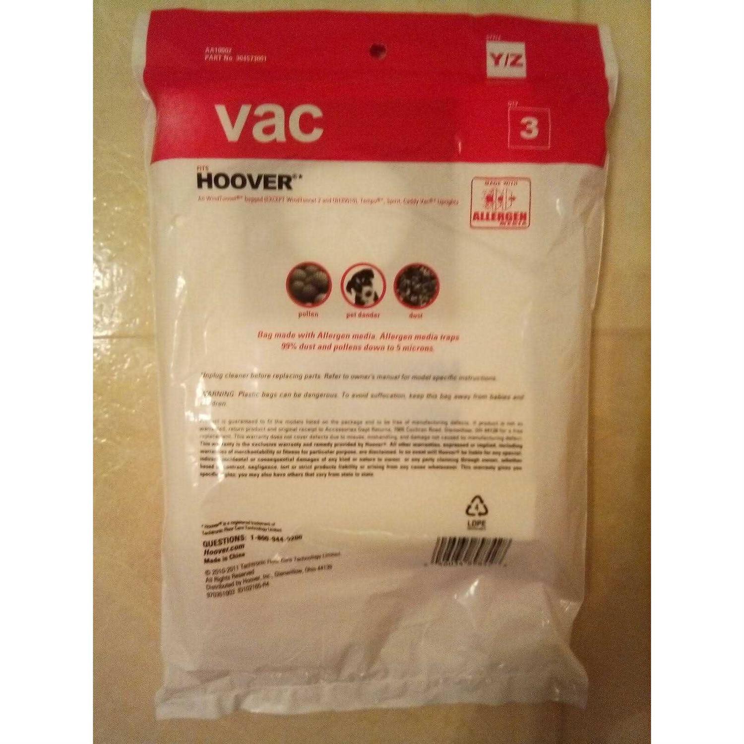 Hoover Vacuum Style Y/Z Bags 3 Qty Allergen Aa10002