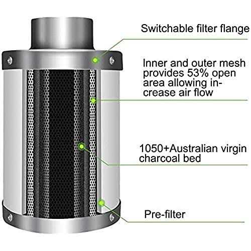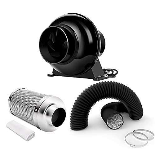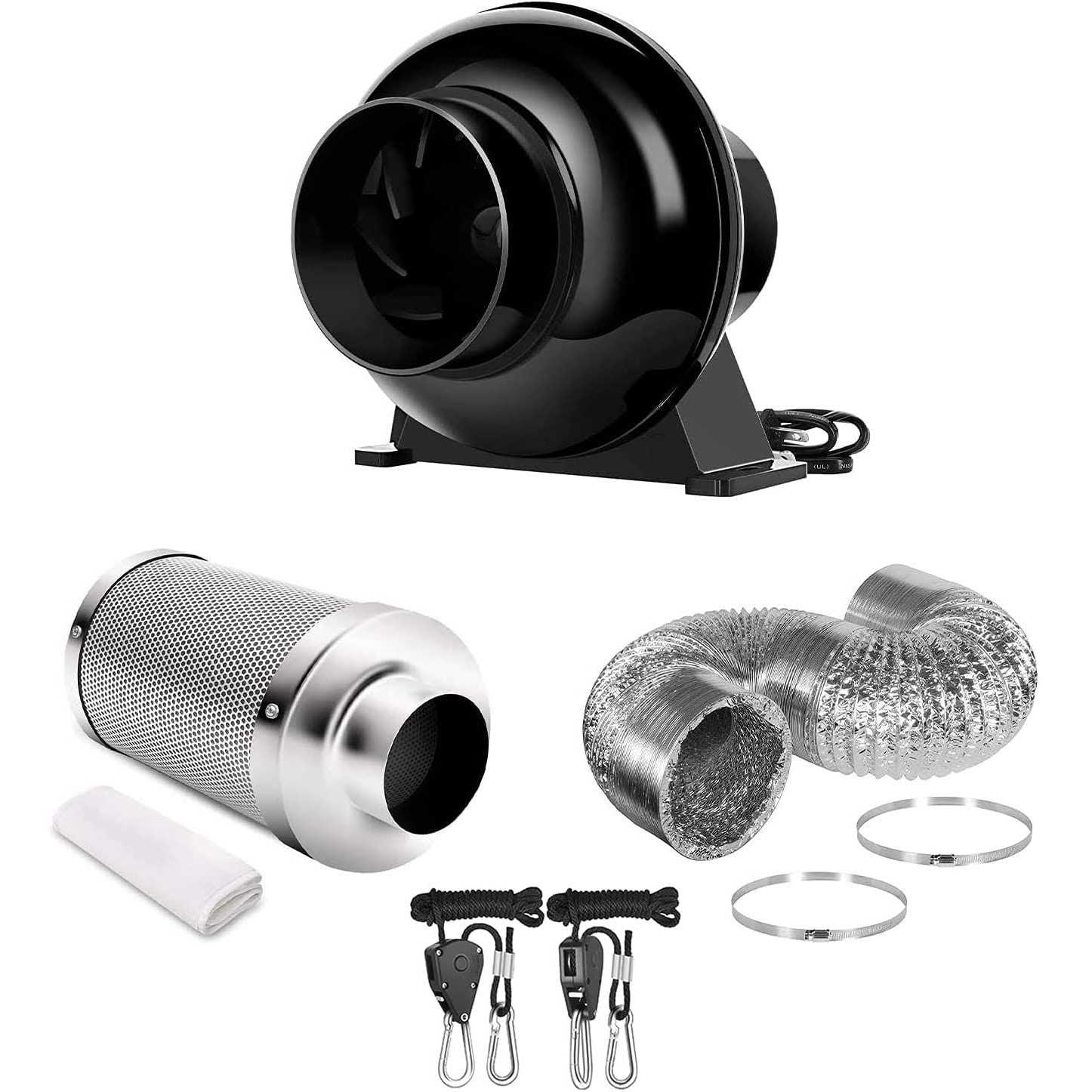 iPower 4 Inch 195 CFM Inline Circulation Vent Blower and 8 Feet Ducting Air Carbon Filter Grow Tent