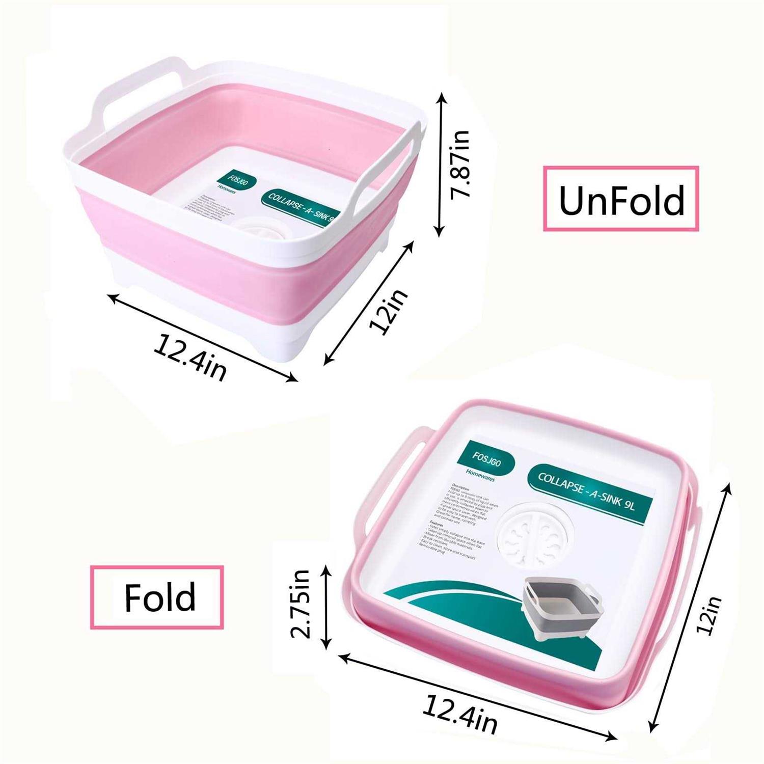 Fosjgo Dish Basin Collapsible with Drain Plug Carry Handles for 9 L Capacity