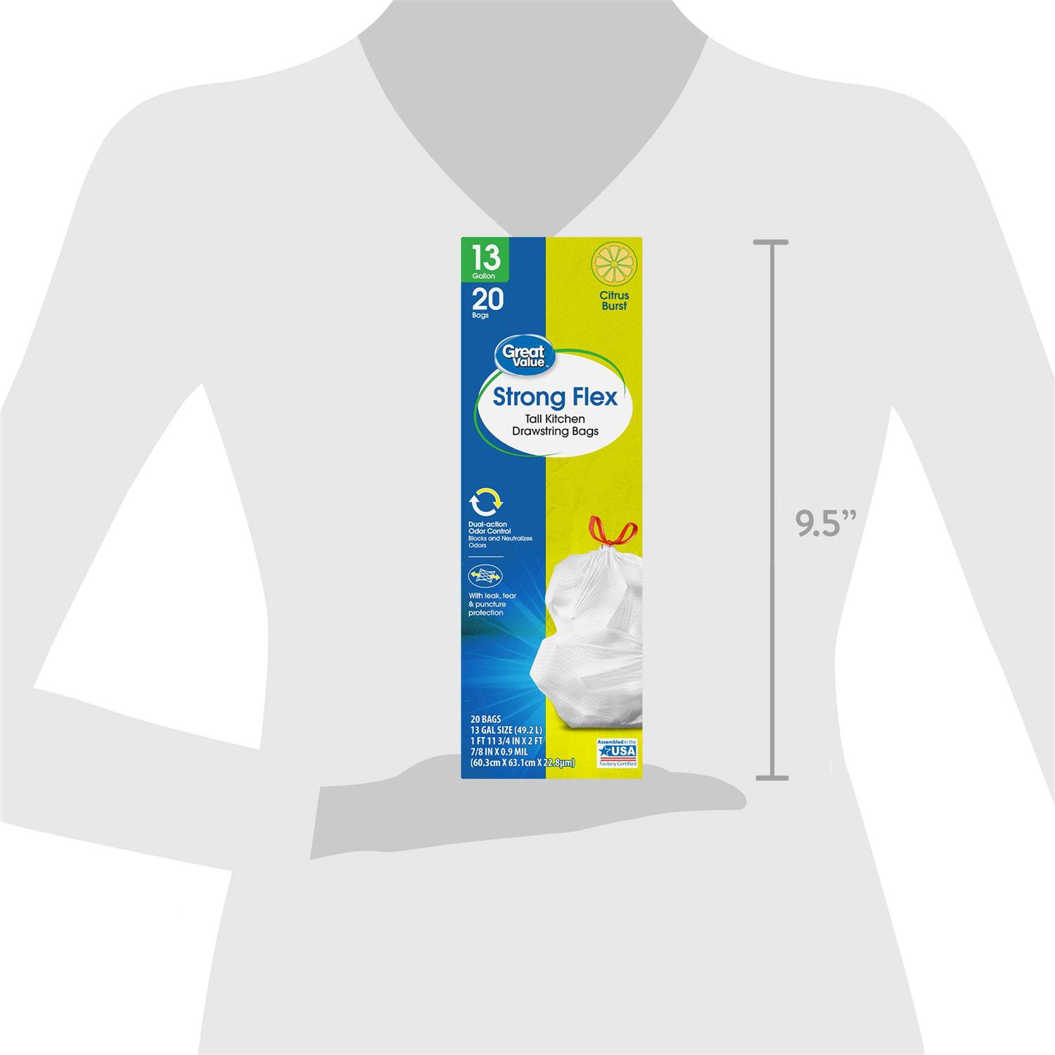 Great Value Strong Flex Tall Kitchen Drawstring Trash Bags