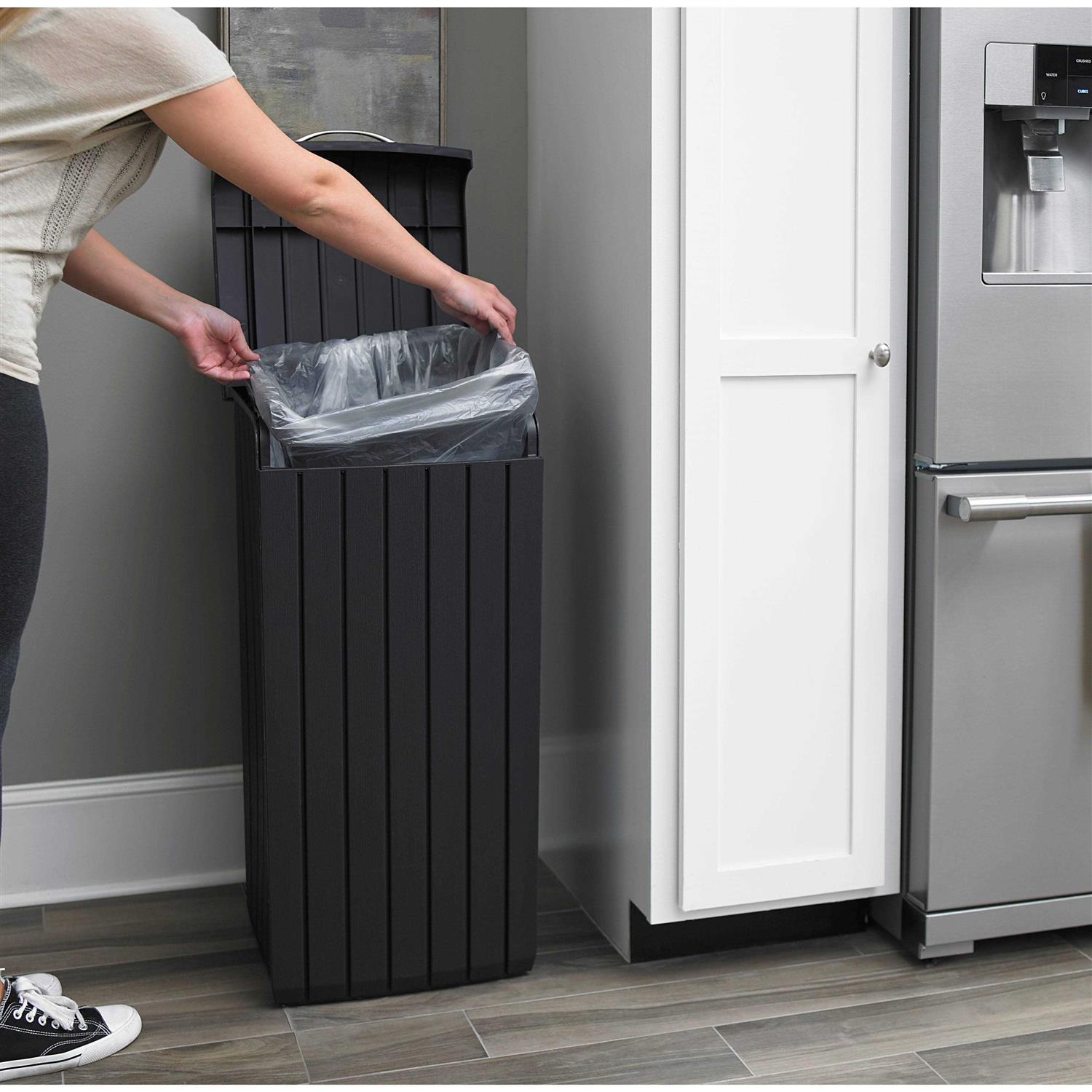 Keter Copenhagen 32 Gallon Resin Large Trash Can with Lid for Patio and Outdoor Kitchen