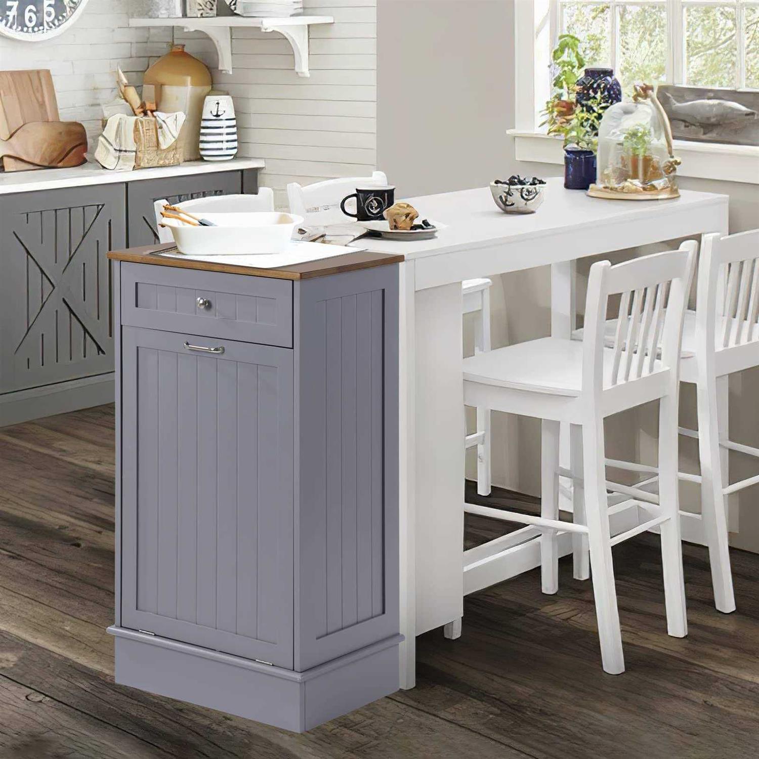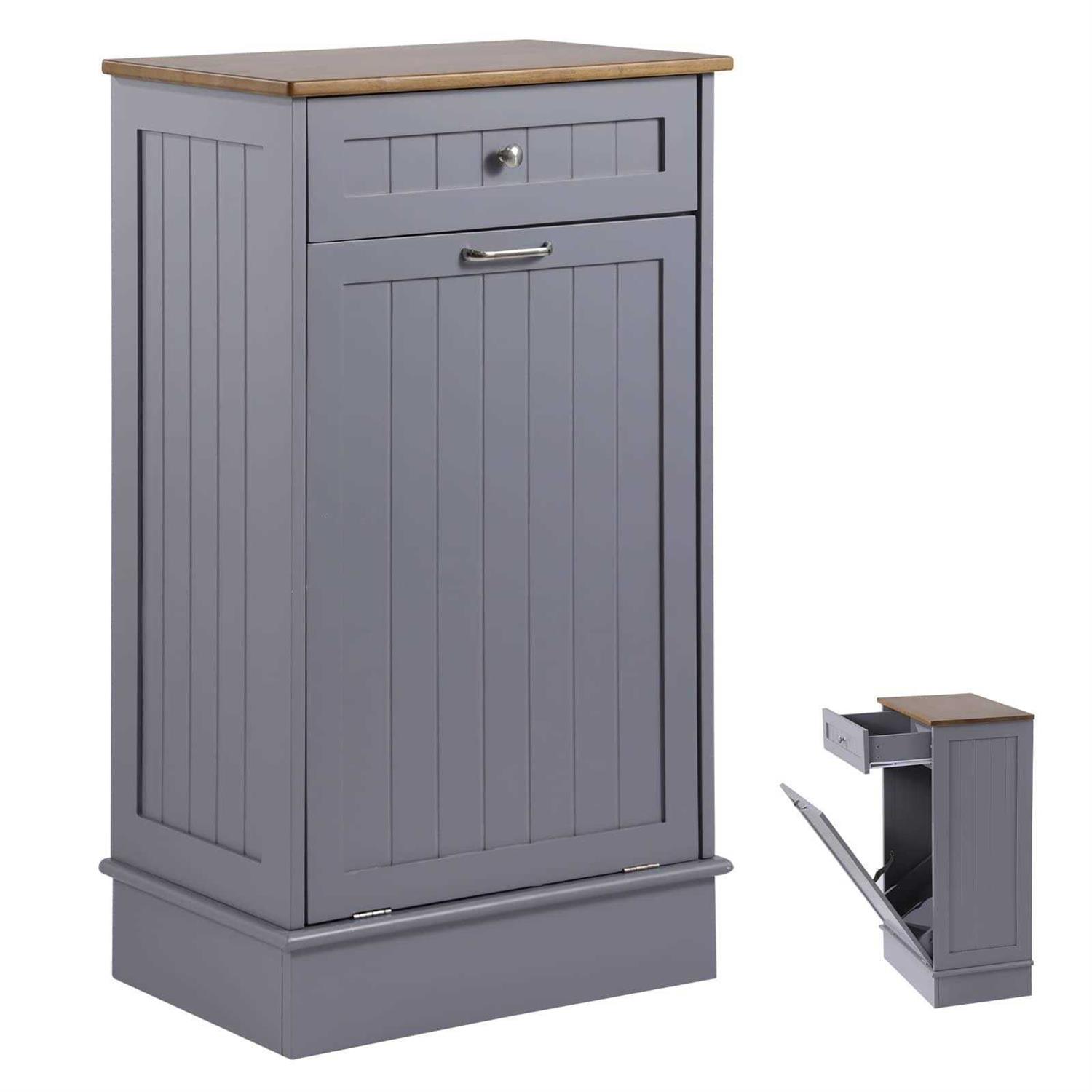Louvixa Tilt Out Trash Cabinet Dog Proof Trash Can Holder Tilt Out