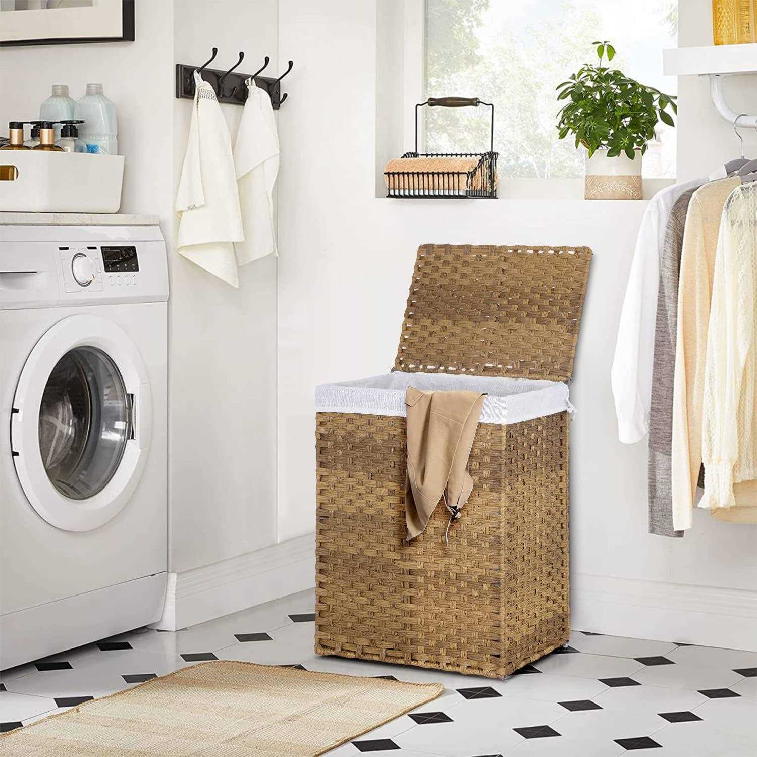 Paylesshere Laundry Basket Handwoven Laundry Hamper 90L/110L Foldable Rattan Laundry Hamper With Lid,2 Removable Liner Bags & 6 Laundry Bags,Clothes