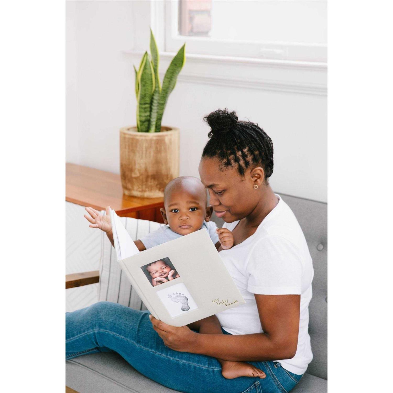 Pearhead Linen Baby Memory Book and Clean-Touch Ink Pad
