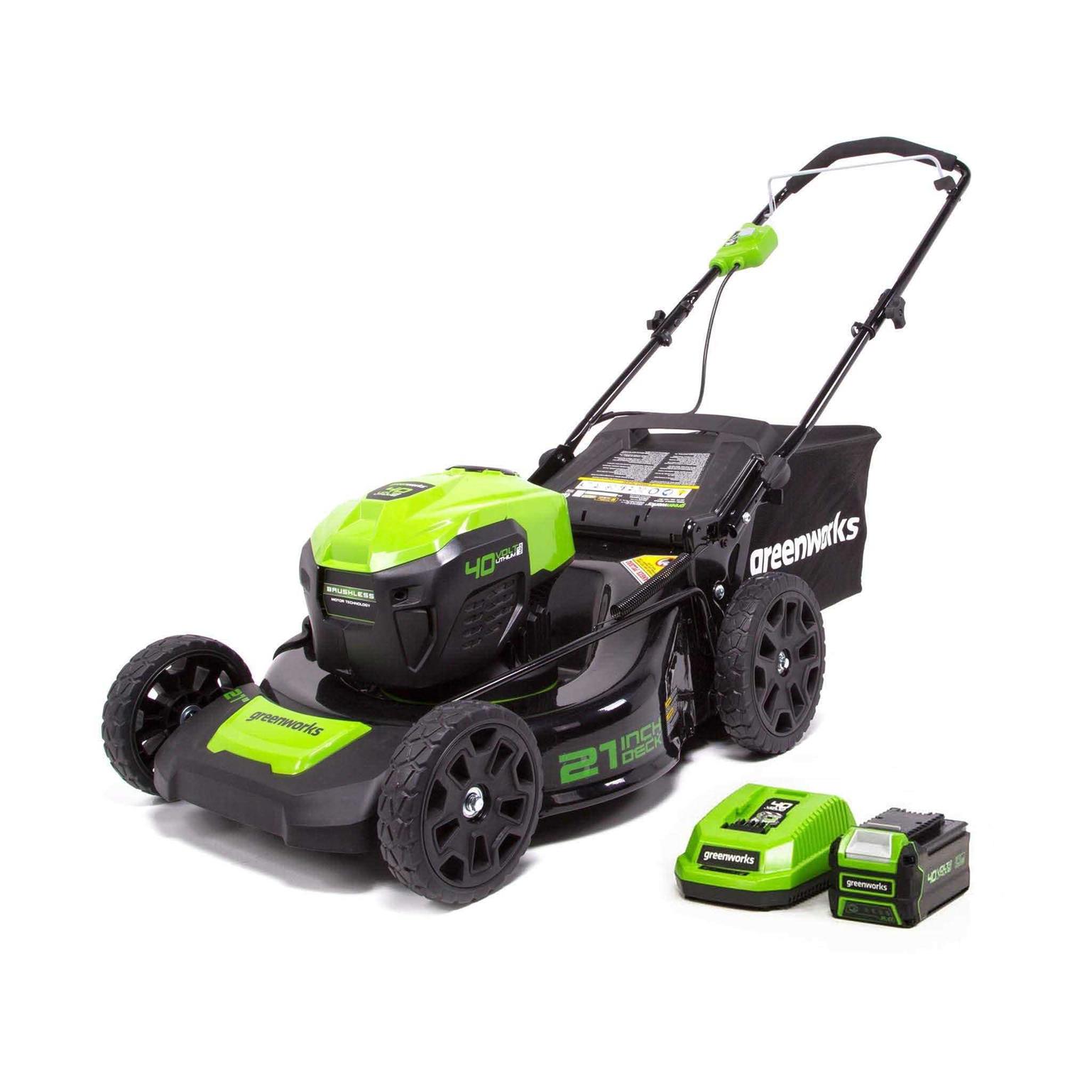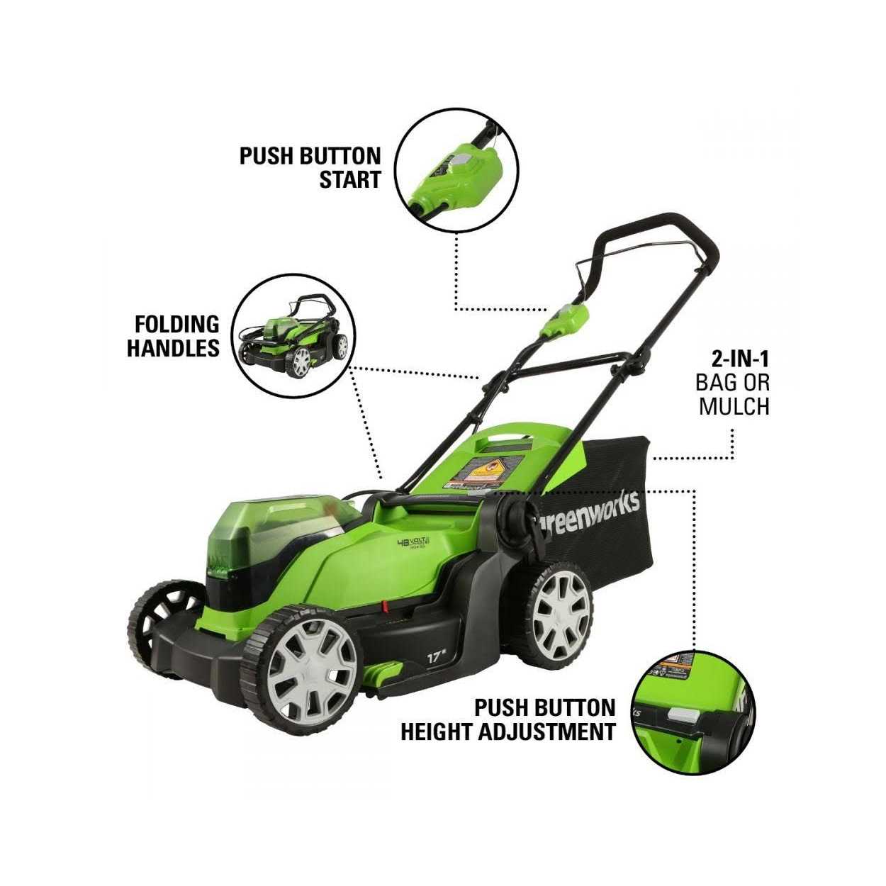 Greenworks 48V 17 in. Lawn Mower, 2 x 4Ah Batteries and Dual Port Charger Included