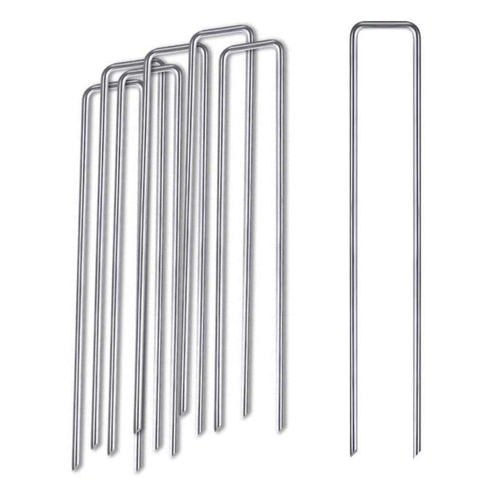 HSHDJKNC Garden Stakes Metal Landscape Staples 6 inch 11 Gauge Stakes Galvanized Steel Stakes Yard Staples Pegs for Weed