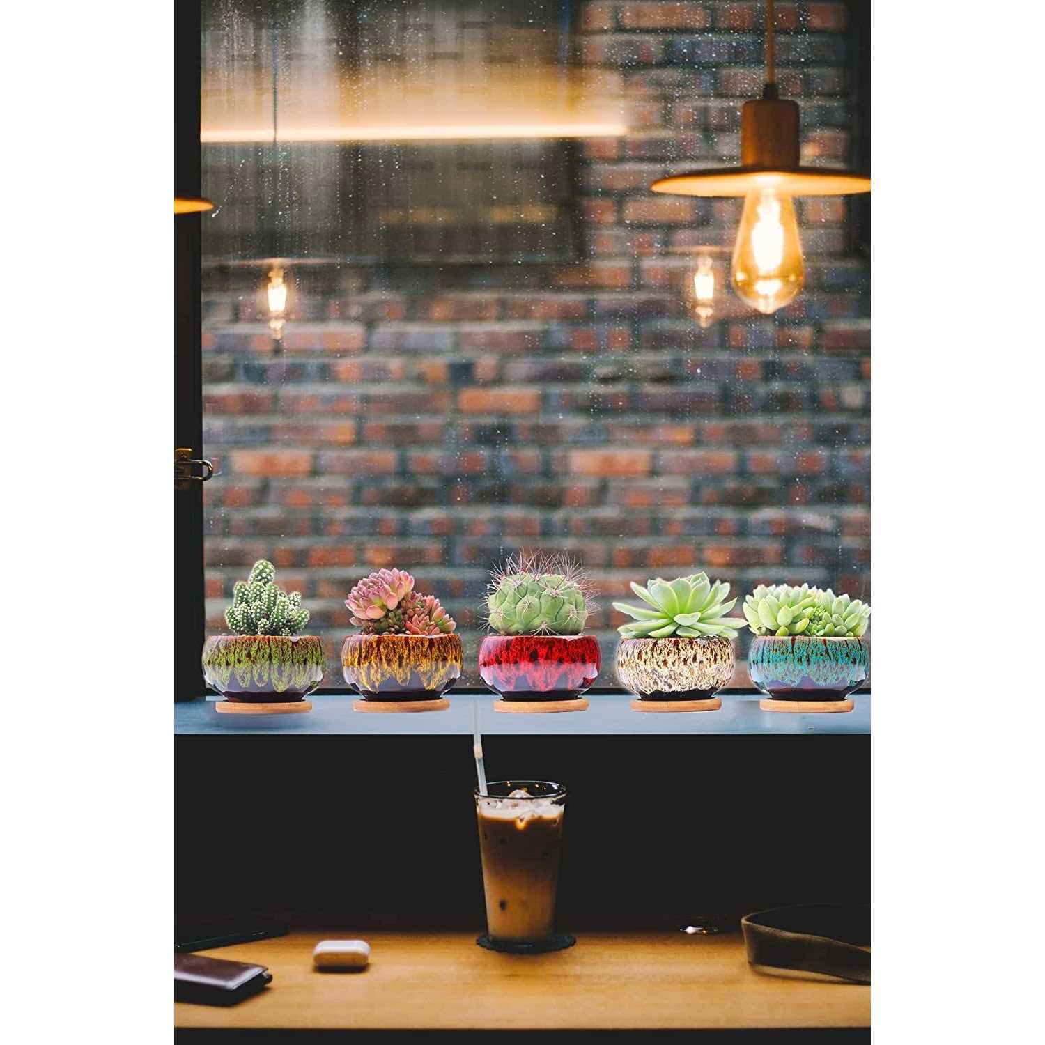 LAMDAWN Cute Ceramic Succulent Garden Pots, Planter With Drainage And Attached Saucer