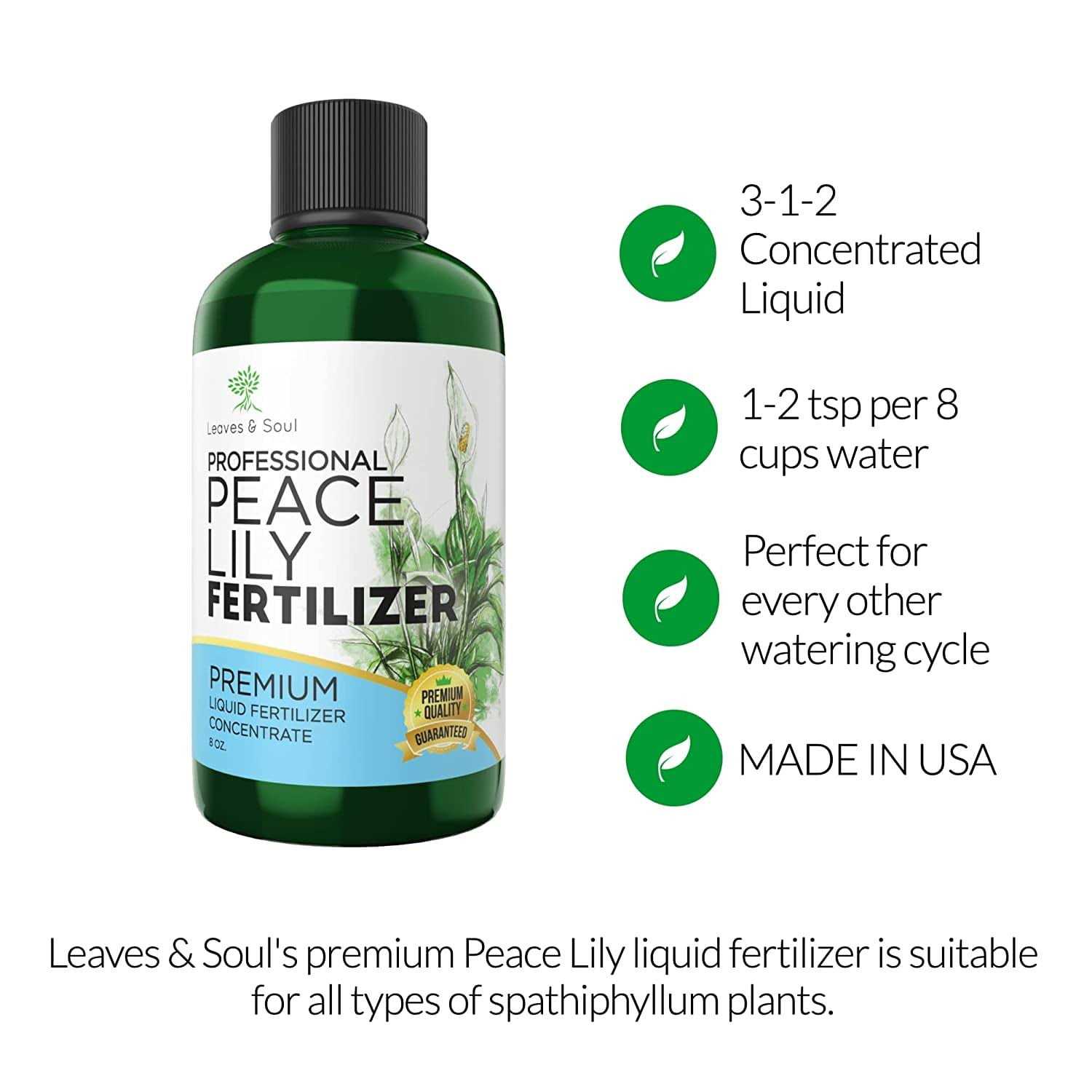 Leaves and Soul Professional Liquid Peace Lily Plant Fertilizer 3-1-2 Concentrate for Plants and Flowers