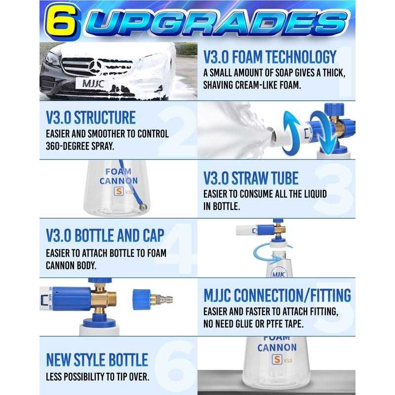 MJJC Foam Cannon S V3.0 with 1/4 Inch Quick Connector for Pressure Washer