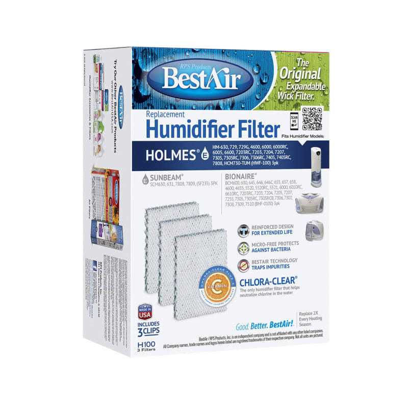 Replacement filter for Holmes (2 filters) HM6000, HM630U, 6000RC, 6005, 7203, HM7203RC, (3 filters) HM7305, 7305RC, 7306, 7306RC, (4 filters) HM7405, 7405RC, (6 filters) HM4600, Bionaire BCM645, 4600, 5520RC, 6000, 6010RC, 6610RC, 7203RC, 7204, 7207, 7305/RC. 3-pack. Type: Extended Life. Pkg Qty: 3, Package Type: Box.