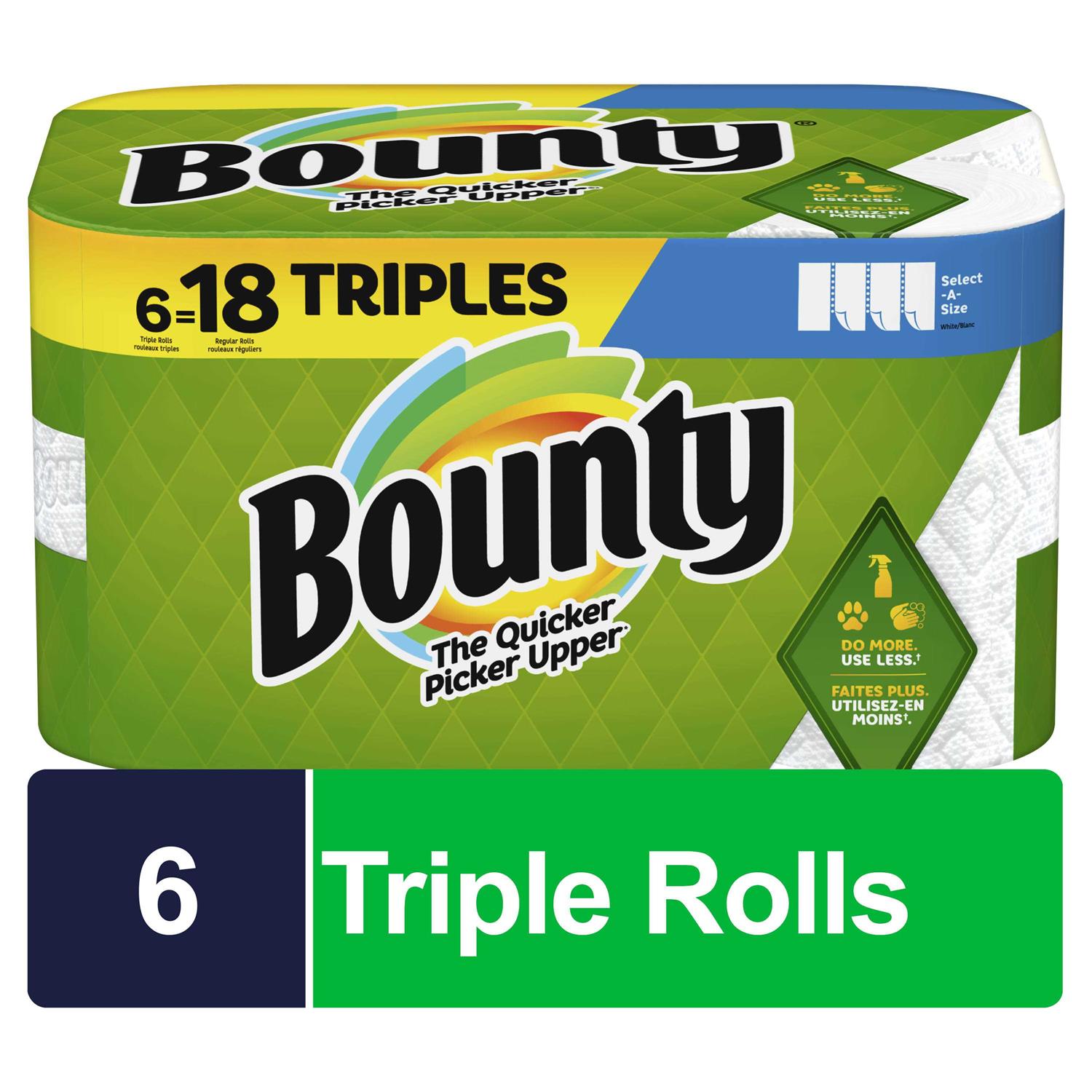 - Pack contains 6 Triple Rolls of white Bounty Select-A-Size Paper Towels.