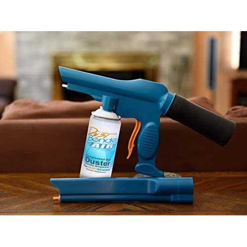The Dust Bender is easily attached to the hose of any standard vacuum cleaner. It features a simple and lightweight design, so you can use it with only one hand. Any standard can of air can be attached to the Dust Bender. The compressed air is effortlessly activated by pulling a trigger. The Dust Bender is made from static dissipative plastic, meaning it is ESD (electrostatic discharge) safe. You can use it to safely clean all your electronic devices, including PCs! The Dust Bender comes with an optional attachment that can extend its reach, allowing you to clean locations in your home that are not normally accessible. You don’t have to touch or move anything; you stay clean and your home décor stays in place. The Dust Bender channels a burst of compressed air to momentarily lift dust and other microscopic particles into the air. Airborne particles are then immediately redirected into your vacuum cleaner. The bidirectional airflows are coordinated to work in unison, so they displace and instantly capture dust and other impurities. This permanently removes the dust and impurities from your living environment, allowing you to achieve a cleaner, safer home.