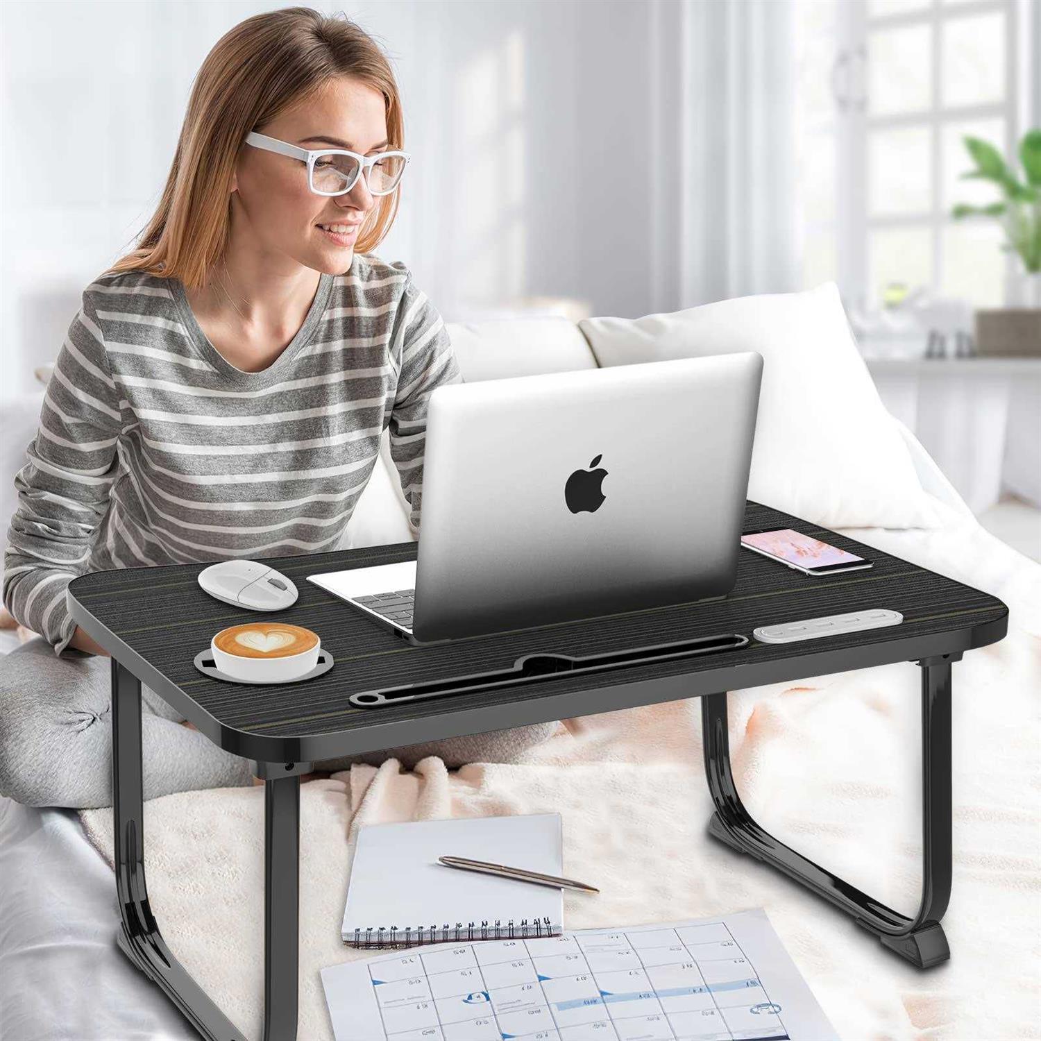 Fayquaze Laptop Bed Desk, Portable Foldable Laptop Bed Table with USB Charge Port Storage Drawer and Cup Holder,Lap Desk Laptop Stand Tray Table