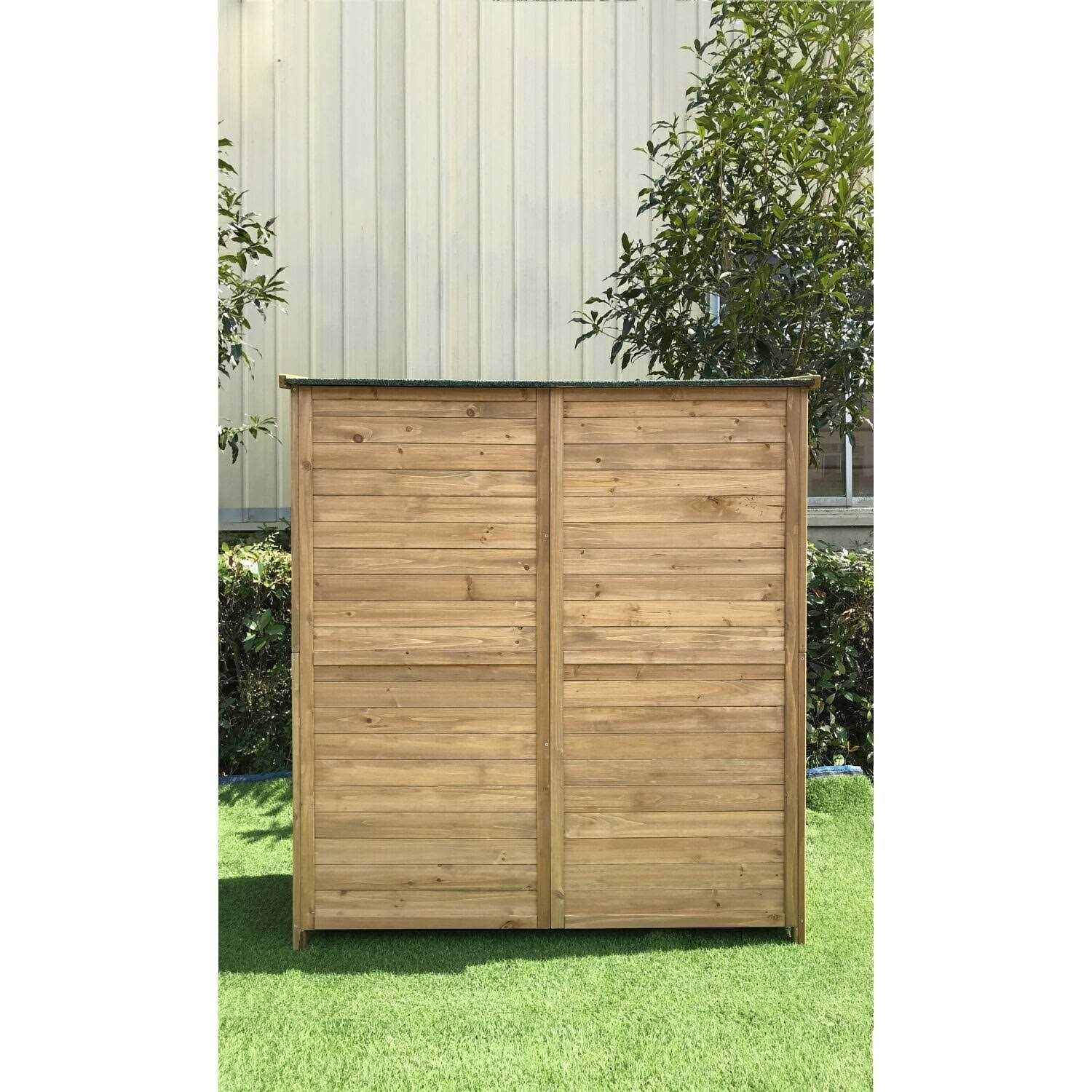- Outdoor Wooden Storage Shed for Tools, Equipment, Garden Supplies, with Shelf and Locking Latch