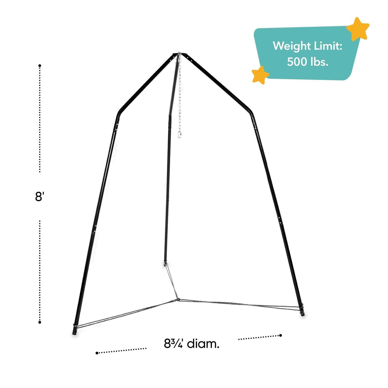 Get ready to relax in your HugglePod or HangOut in no time at all! Our sturdy custom-crafted metal Family HugglePod HangOut Stand is the easiest way to hang our Family HugglePod HangOut outdoorsit even includes hanging hardware. The distance between the stand’s legs allows ample room to hang any of our HugglePods or hanging chairs. Built to last this super sturdy stand holds up to 500 lbs.