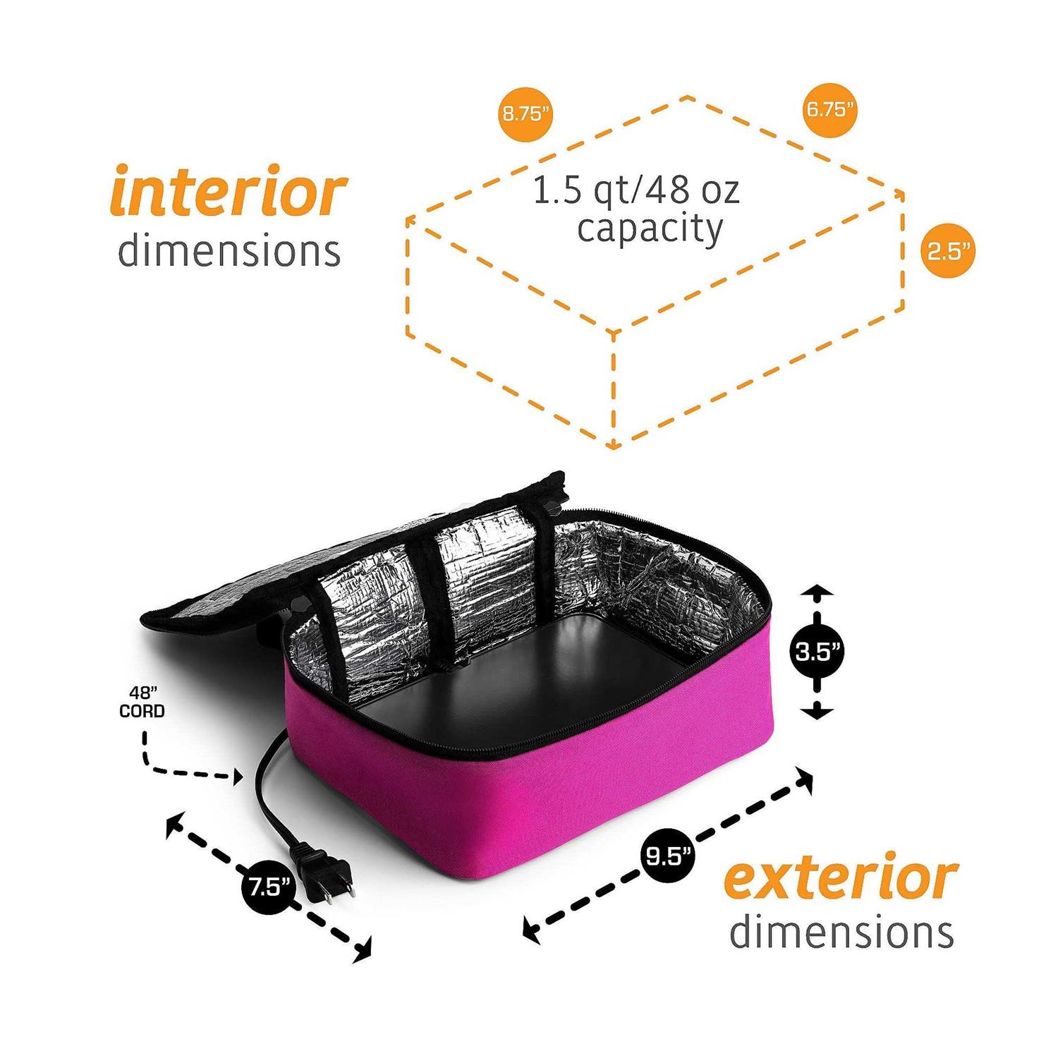 - Accommodates containers approx. 8.75″ W x 6.75″ L x 2.5″ H or 1.5 quarts of food.