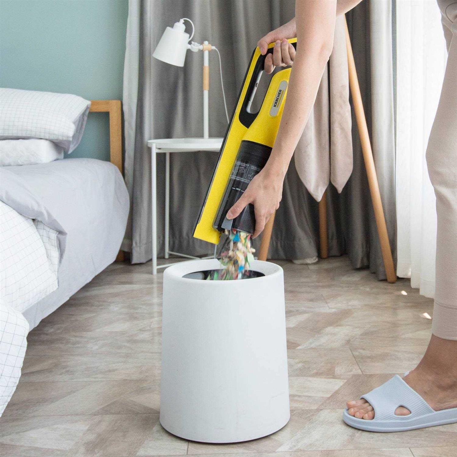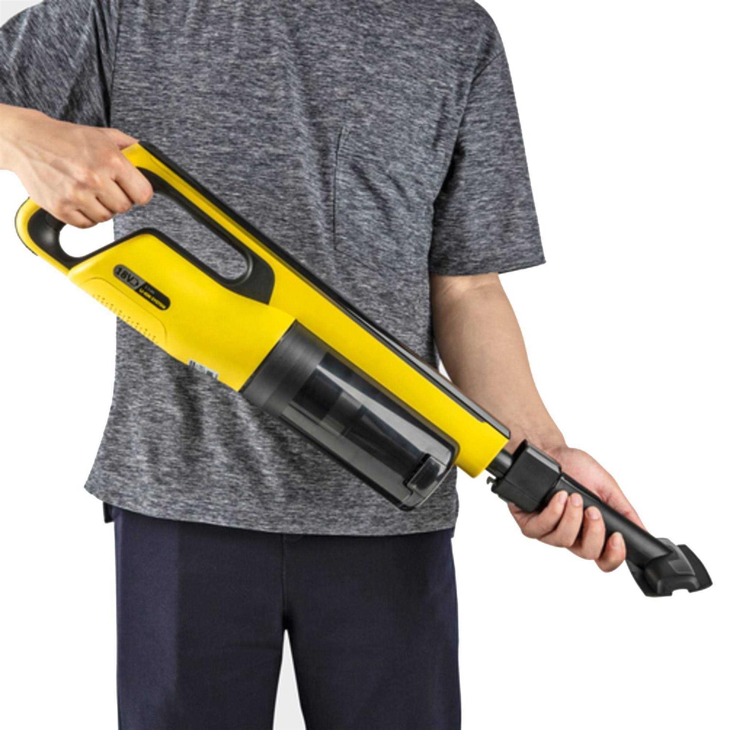 The Karcher VC 4s Cordless stick vacuum impresses with its diversity and intelligent design. Independent of power outlets, it can be used practically anywhere in the home and impresses with its constant suction power (15,000 Pa) and faultless cleaning results on hard floors and especially on carpeted floors. This is ensured by its brushless high-speed motor, the multi-cyclone cleaning system with HEPA 12 high-performance filter and motorized floor nozzle. Thanks to the clever, patented switch and double-handle design, in just a few seconds it is transformed from a classic upright vacuum cleaner into a practical handheld vacuum cleaner. In Eco mode, its powerful battery can keep going for a good hour – more than enough to thoroughly clean floors, furniture or even the car. The self-standing charging station is convenient for charging and eliminates the need to mount the charging station on a wall.
