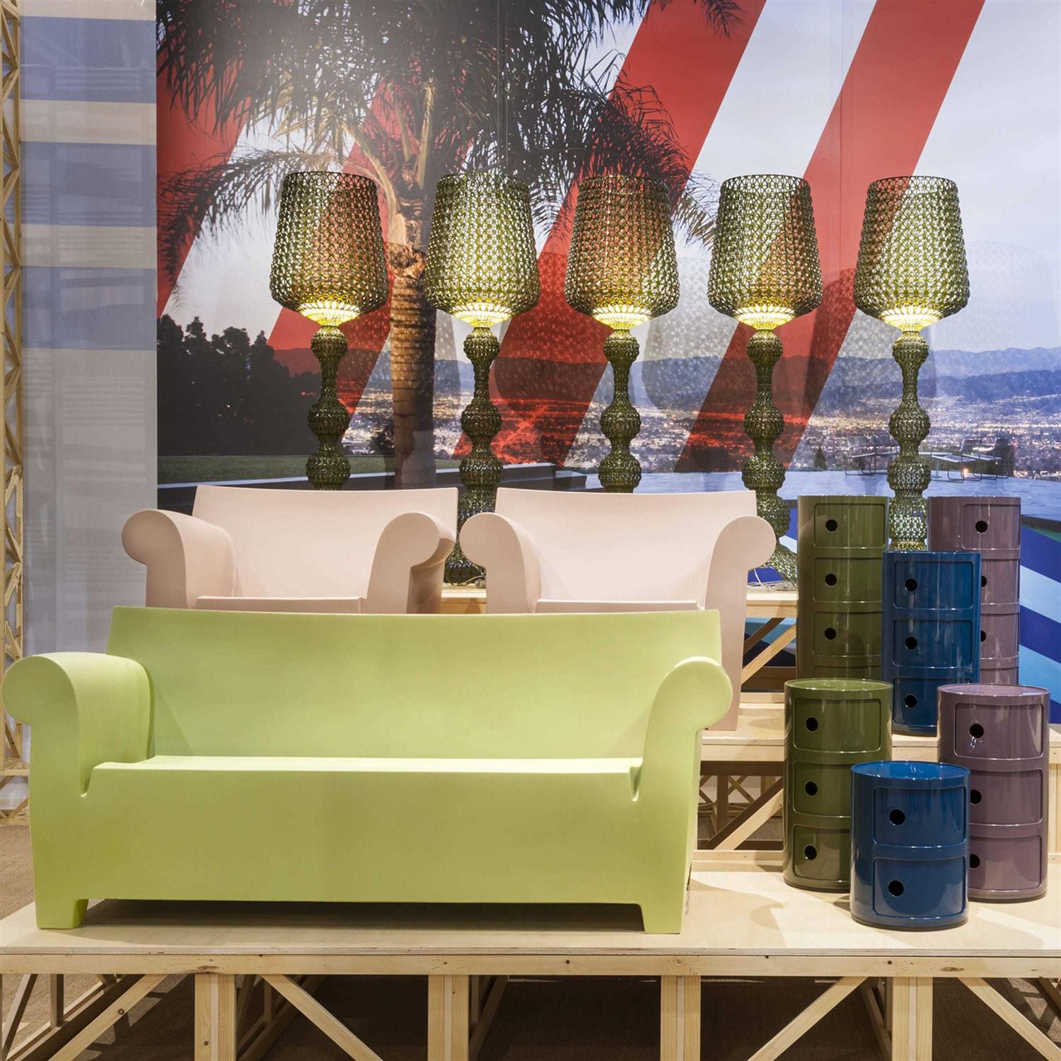 The Kartell containers can be placed in all areas of the house in the bathroom, in the bedroom, in the kitchen and in the living room as well as in the children’s room. The Componibili are available round and square and they can also be supplied on rolls. Flexible, functional, practical the Componibili are a design classic with a thirty-year tradition that has won much recognition for its conciseness and innovation in design and has long since rolled into the permanent exhibition of the Museum of Modern Art in New York and the Centre George Pompidou in Paris. The pre-configured modules with two and three compartments and a diameter of 32 cm are not expandable and cannot be stacked. Due to their smaller, more compact and complete design, however, they are well suited as side cabinets or bedside tables and can be used no less flexibly than the larger, stackable individual elements.
