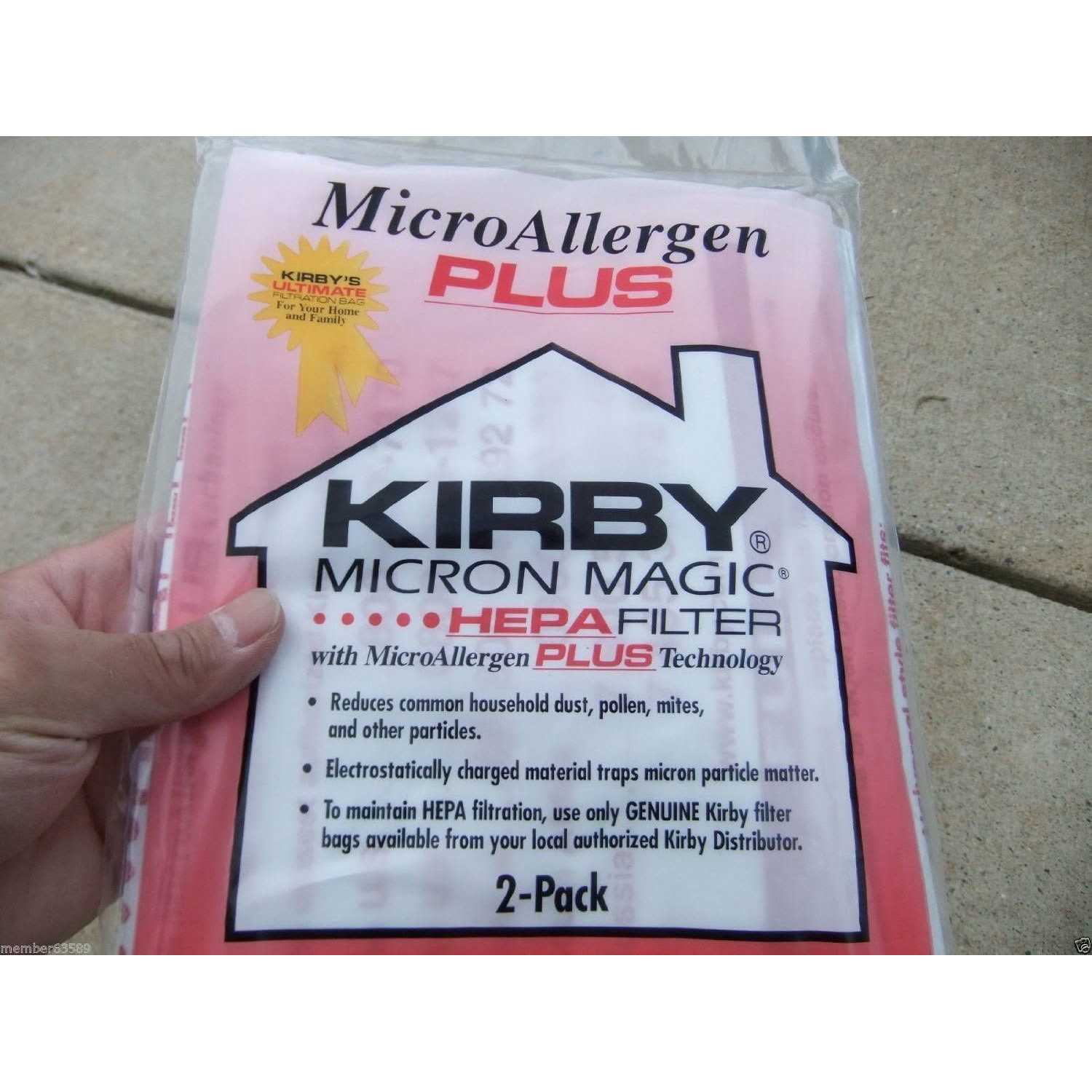 Kirbys best filtration for your Kirby System, in a two-pack! The Kirby MicroAllergen Plus HEPA Filter offers maximum filtration for your Kirby vacuum. Our Kirby HEPA filter traps common household dust, pollen, and other particles letting you easily dispose of them without a mess. With our HEPA filter, you can keep your home smelling fresh and clean. Our electrostatically charged material traps micron particle matter keeping all the dirt, dust, pet hair, and more inside the Kirby HEPA filter bag.Pet owners everywhere know how difficult keeping your home free of pet hair and odor can be. Luckily, the Kirby HEPA Filter provides maximum filtration for your Kirby vacuum. The superior airflow in the Kirby System easily removes pet hair and odor from your home trapping it in our disposable filters for easy clean-up! Use Micron Magic HEPA Filter Plus with the Pet Brush Roll for maximum cleaning efficiency!