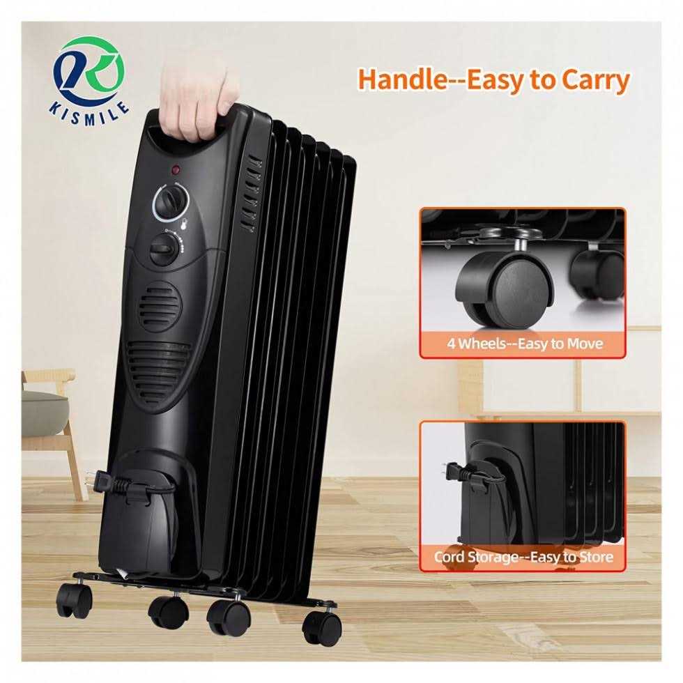 Kismile 1500W Oil Filled Radiator Heater Portable Electric Heater With 3 Heat Settings