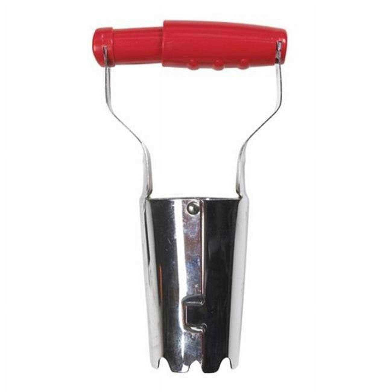Great for planting bulbs. Spring loaded release. Depth markings on side of planter. The improved comfort grip ensures a clean, effortless plant every time. The serrated stainless steel blades easily cut through soil to plant your bulb at the precise depth needed and the ergonomic grip reduces strain on your hands.