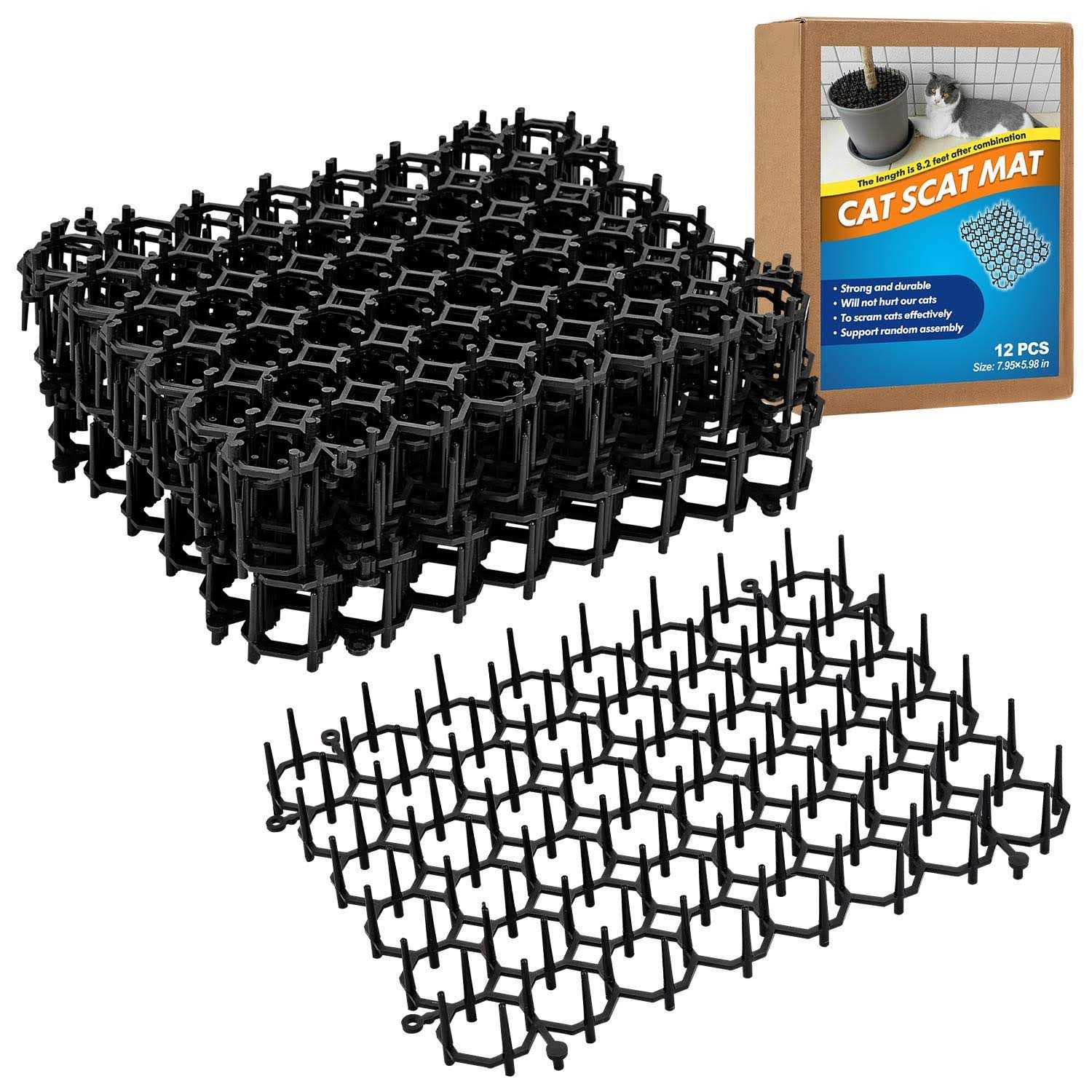 Leys Cat Deterrent Mat, Scat Mat for Cats with Spikes, Cat Repellent Indoor Furniture, Outdoor Garden Fence Animal Barrier, 12 PackSet