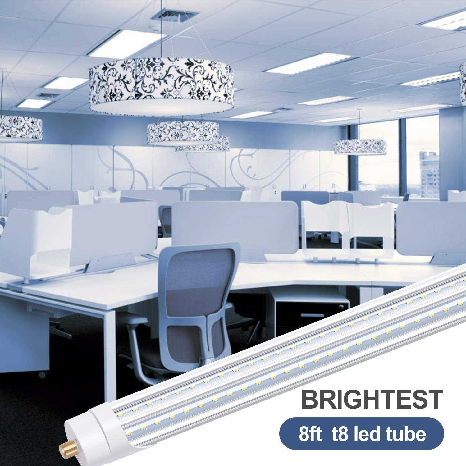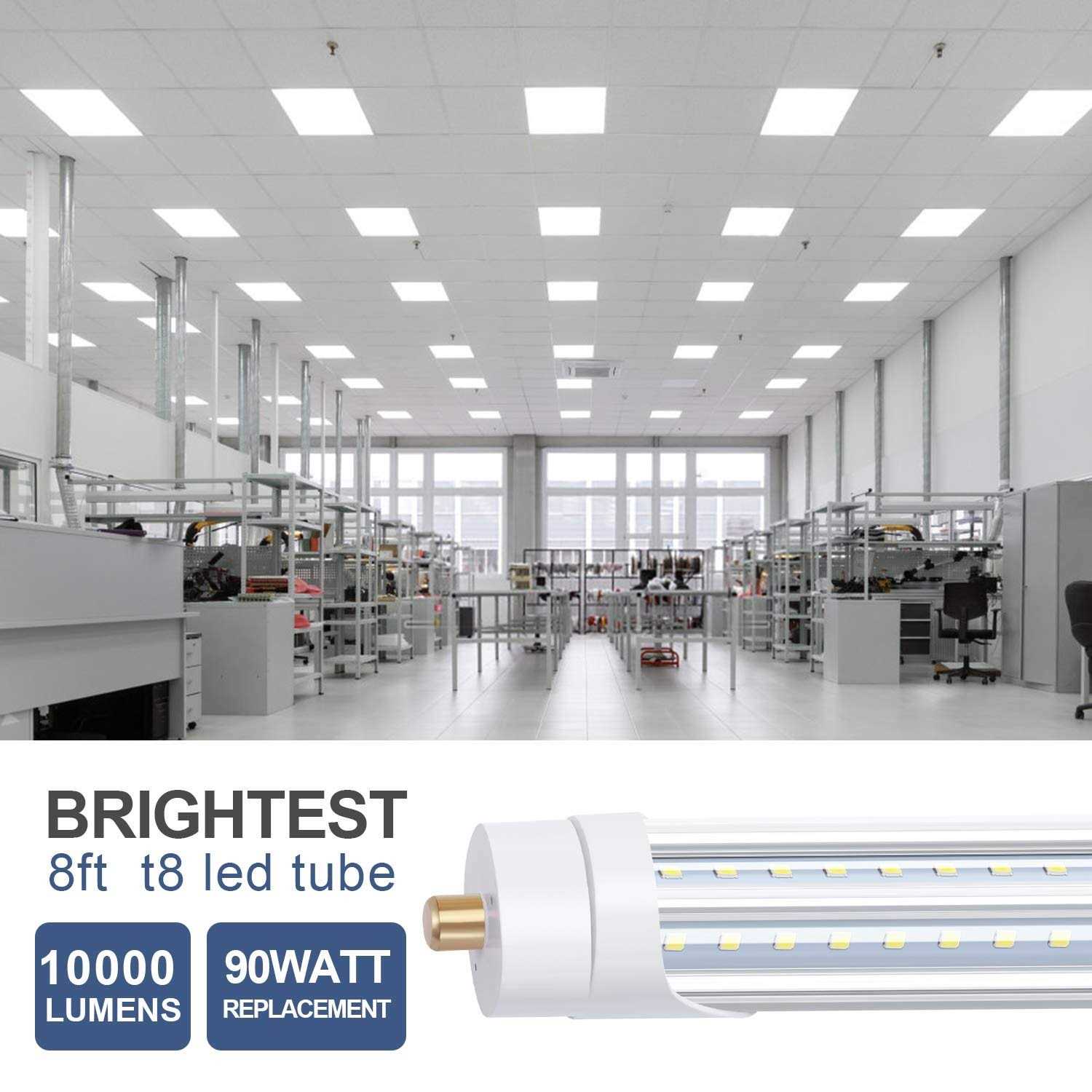 SUPER BRIGHT: These 8FT FA8 LED Light Bulbs give 270 degree lighting with no wasted light, the LED Chips (576PCS SMD2835) are much more than other 2 rows tube, so it will shed much more light on your products which makes products brighter and better. Replace 180W fluorescent tubes by 90W T8 LED Tube. EASY INSTALLATION -Just remove or bypass the starter and ballast before installation. It can replace traditional T8 T10 T12 fluorescent bulbs. WIDE APPLICATION – This 8 Feet FA8 Single Pin Bulb Widely used in garage, schools, hospitals, factories, warehouses, supermarkets, offices, convenience stores, gas stations, shops, hotels, etc. – br /b – Answer: Yes, please remove the starter and ballast before Installation. /b – br /b – Question: Is it single ended power or dual ended power? /b – Answer: It is dual ended power for this 8ft light bulb. /b – br – Question: This LED light tube has single pin or two Pins? – Answer: This is FA8 Single Pin LED Tube Light! – br – Question: Will it used for outdoor and dimmable? – Answer: No, this 8ft tube can only used for indoor and non-dimmable. – br – Answer: Yes! It can replace traditional T8 T10 T12 fluorescent bulbs. – br – br – Specification: /b – Length: 8FT / 96Inch – Power: 90W – LED Source: 2835SMD – Lumen: 120LM/W – Color temperature: Cold White 6000K /b – Material: High quality Aluminum & superior PC – Power Factor: >0.95 – Beam Angle:270 Degree – Color Rendering Index(CRI): 85 – Working temp: -30°C~ +50°C – PC cover: Clear / Transparent Cover – Voltage: AC85-277V – Wide application – Widely used in garage, schools, hospitals, factories, warehouses, supermarkets, offices, convenience stores, gas stations, shops, hotels, etc. /p