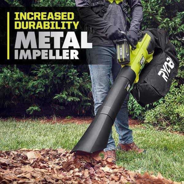 The RYOBI 40V HP Jet Fan Blower/Vacuum makes your yard clean up quick and convenient. This single tube 3-in-1 tool for blowing, vacuuming, and mulching has 40V HP Technology that delivers 2X more power for gas performance. Conveniently change between blow and vacuum mode with the turn of a dial. This tool contains a durable metal impeller to quickly shred debris and eliminate clogs, while mulching 20 bags into 1. The included adjustable harness easily attaches to the unit and provides utmost balance and comfort when getting the job done. As part of the Ryobi 40V system, it is compatible with all 40V batteries.