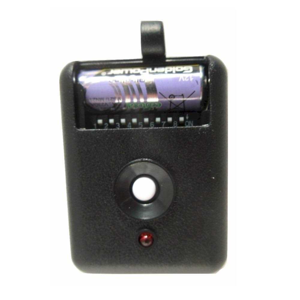 Miniature key ring transmitter black case white button key ring supplied test/operate LED 256 selectable codes.