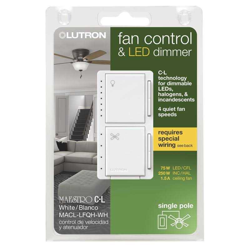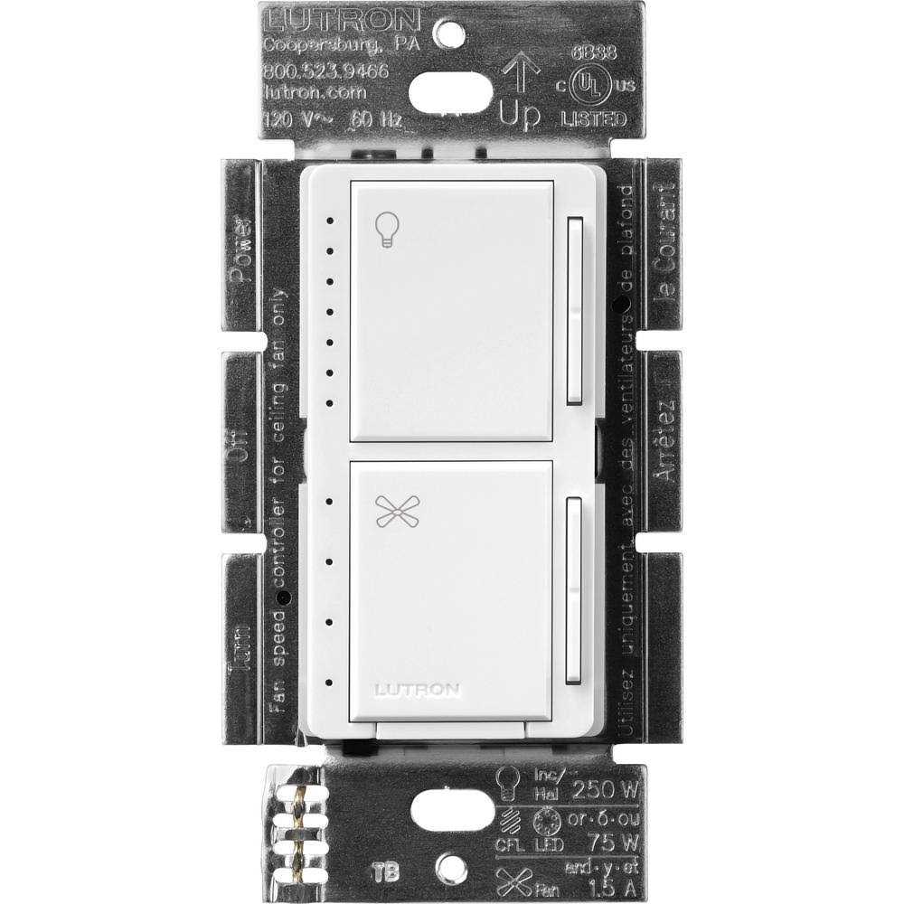 Product Description Control your ceiling fan and light with ease using the Maestro fan/light control. This wall-mounted control allows for you to easily adjust the fan speed as well as dim or brighten the light without having to fumble for a pull chain. With the seven fan speeds and full-range dimming, you can optimize your personal comfort and set your room conditions just the way you want them. Tap to preset light level/fan speed, tap twice for full on, touch rocker to adjust light level/fan speed. Four fan speeds plus off. Indicator lights display light level and fan speed. No canopy module required. No neutral wire required. Capable of controlling up to 75W dimmable CFL/LED or 250W incandescent/halogen lgihting loads. Capable of controlling up to 1.5 amp paddle type ceiling fan loads.