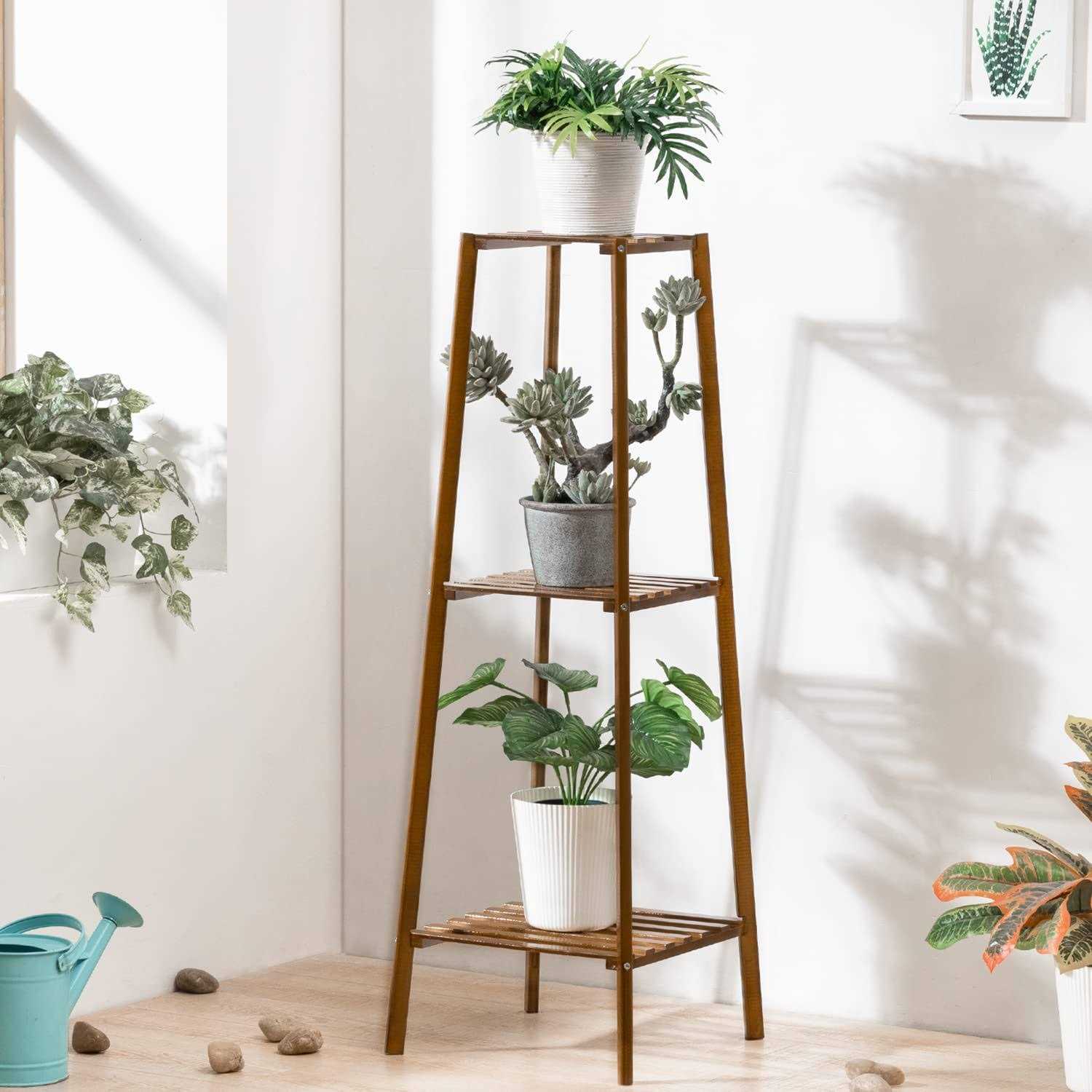 Magshion Bamboo Tall Plant Stand Pot Holder Small Space Table