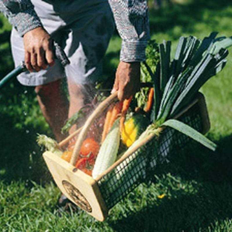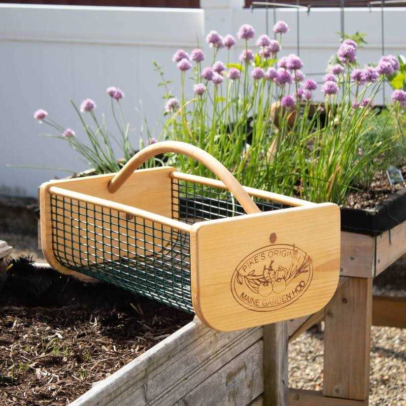 Collect and transport all your vegetables, flowers or tools from the garden in this generously sized colander trug, then simply rinse and drain with no fuss, mess, or spillage. For generations, New England clam diggers have relied on these sturdy hods to stow and clean their day’s catch. Now ‘inlanders’ are raving about their usefulness around the garden, yard and home. Doubles as a magazine holder, pantry bin or portable toy box for a vintage rustic look Food-grade, PVC-coated wire and pine with steam-bent solid oak handle 18-7/8″L x 11″W x 6-1/4″, USA made For generations, New England clam diggers have relied on these sturdy hods to stow and clean their day’s catch. Now ‘inlanders’ are raving about their usefulness around the garden, yard and home. Wire mesh body allows you to wash and drain harvest right in the hod. Doubles as a magazine holder, pantry bin or portable toy box. Food-grade, PVC-coated wire. Pine ends with steam-bent solid oak handle. 18-7/8″L x 11″W x 6-1/4″D. USA made .