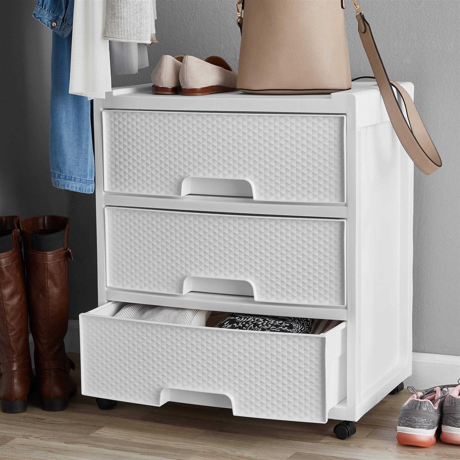 Mainstays 3 Drawer Wide Diamond Arctic White Plastic Storage Cart