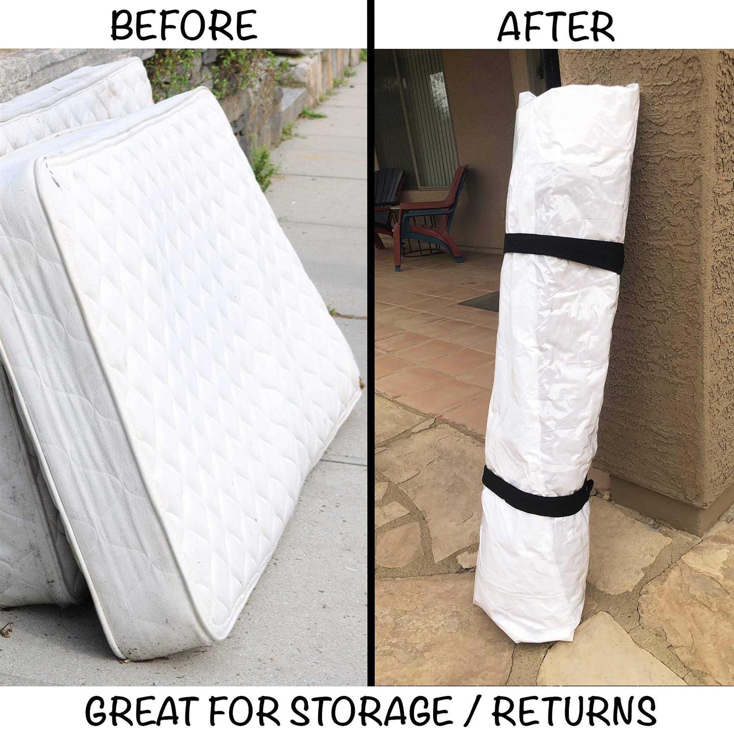 SHRINK YOUR MATTRESS – Compress your foam or inner spring mattress with vacuum seal technology to the original size it came packed to you. This makes moving and returning it super easy! Works with mattresses from Casper, AllsWell, Zinus, Tuft & Needle, Helix, Linenspa, Purple, Nectar, Leesa, etc. SAVE MONEY WHILE MOVING OR RETURNING – Mattresses can be a pain to move or return, they are big and bulky. By compressing the mattress you can save on moving costs by not having to rent a truck to move it. Just move it in your car for free! AIRTIGHT PROTECTION – The airtight seal protects your mattress against moisture, dust and dirt. With a double zip seal, this mattress bag ensures a good seal. REUSABLE BAG – With proper care, this bag can be reused for multiple moves as it is made with durable components. This will save you a bunch of money in the long run. DURABLE PLASTIC – This bag is made with durability in mind, it is 125 microns or 5 mil thick to ensure reliability.