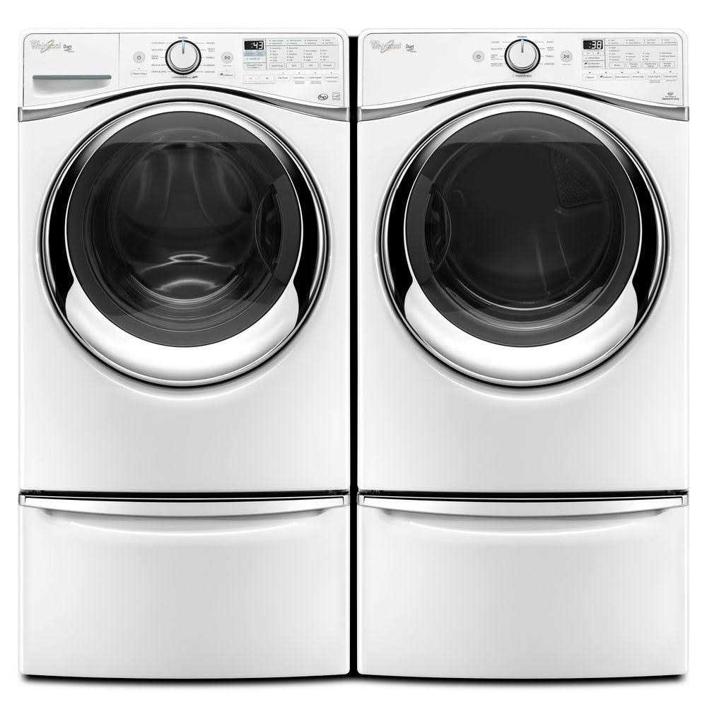 Give the cleaning power of Maytag more prominence, while adding a drawer to hide away laundry supplies. Accessory pedestals add 15.5′′ of height for bonus storage and to help prevent bending and stooping. Compatible with most front-load Whirlpool washers and dryers To reduce bending while loading and unloading laundry. 15-1/2′′ pedestal Raises your appliance to a comfortable height. Storage drawer Keeps laundry aids within easy reach. Chrome handle Provides a comfortable grip to open the drawer.