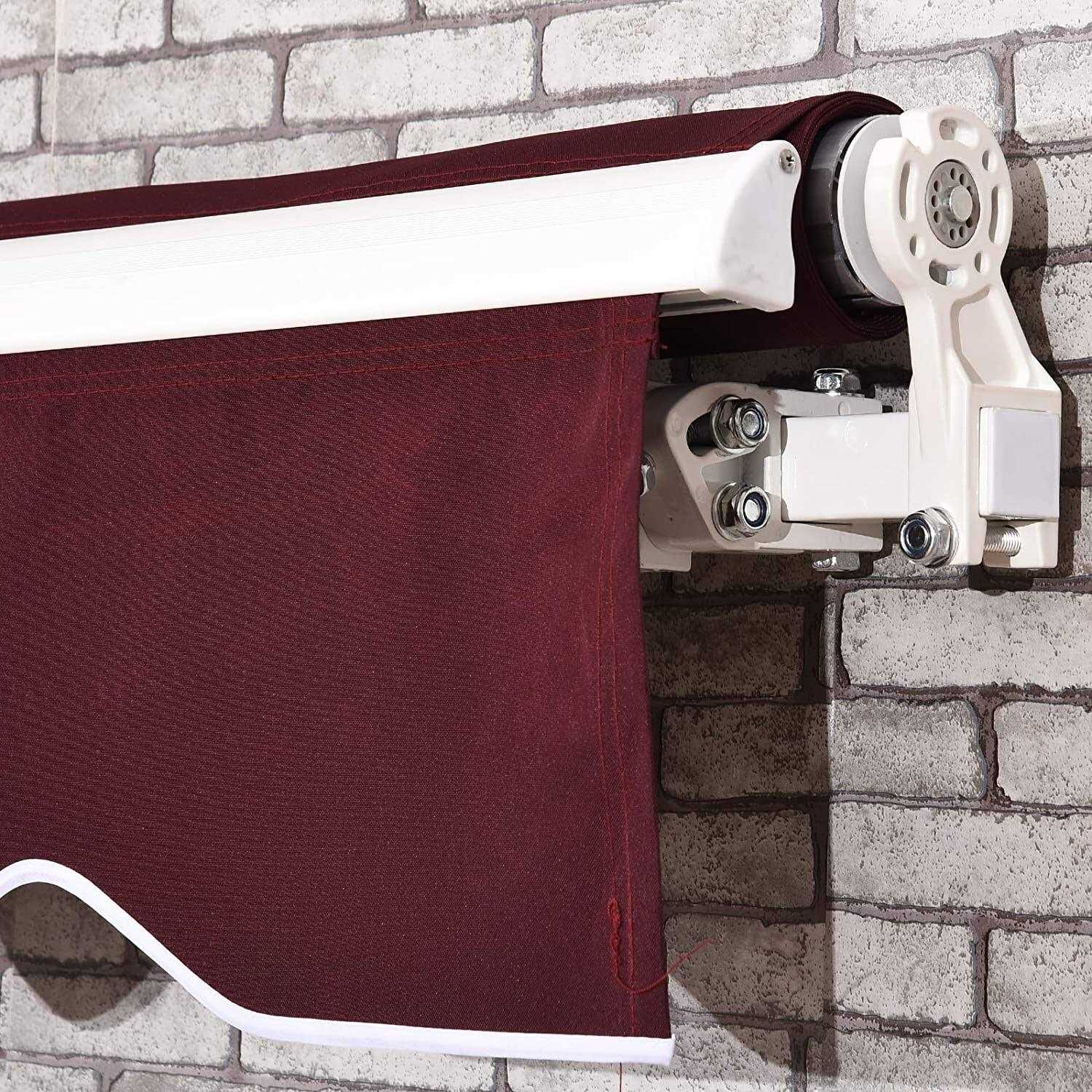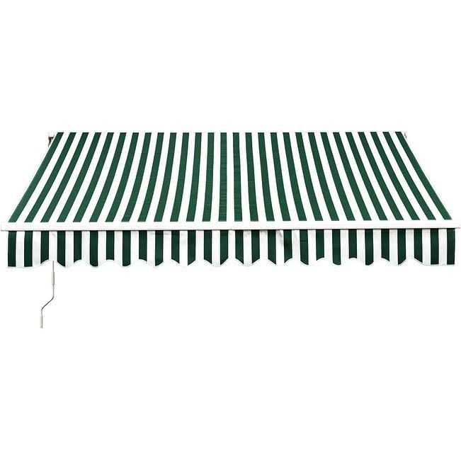 Mcombo 12×10 Feet Manual Retractable Patio Door Window Awning Sunshade Shelter Outdoor Canopy (Dark Green with White Stripes)