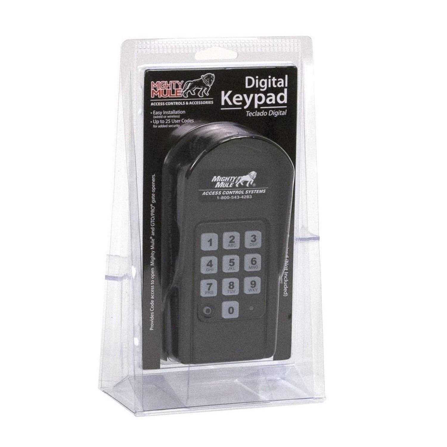 Wireless weatherproof keypad. Numeric keypad for controlled access with simple programming that can hold up to 25 access codes. Additionally, you can have temporary codes that can be programmed to expire within one to seven days. The Mighty Mule Digital Keypad is designed to work with all Mighty Mule Automatic Gate Openers; this is an ideal accessory for convenience and security. Easy DIY (Do It Yourself) programming for your Mighty Mule Automatic Gate Opener system. Backed by a 12 month Mighty Mule and Technical Support.