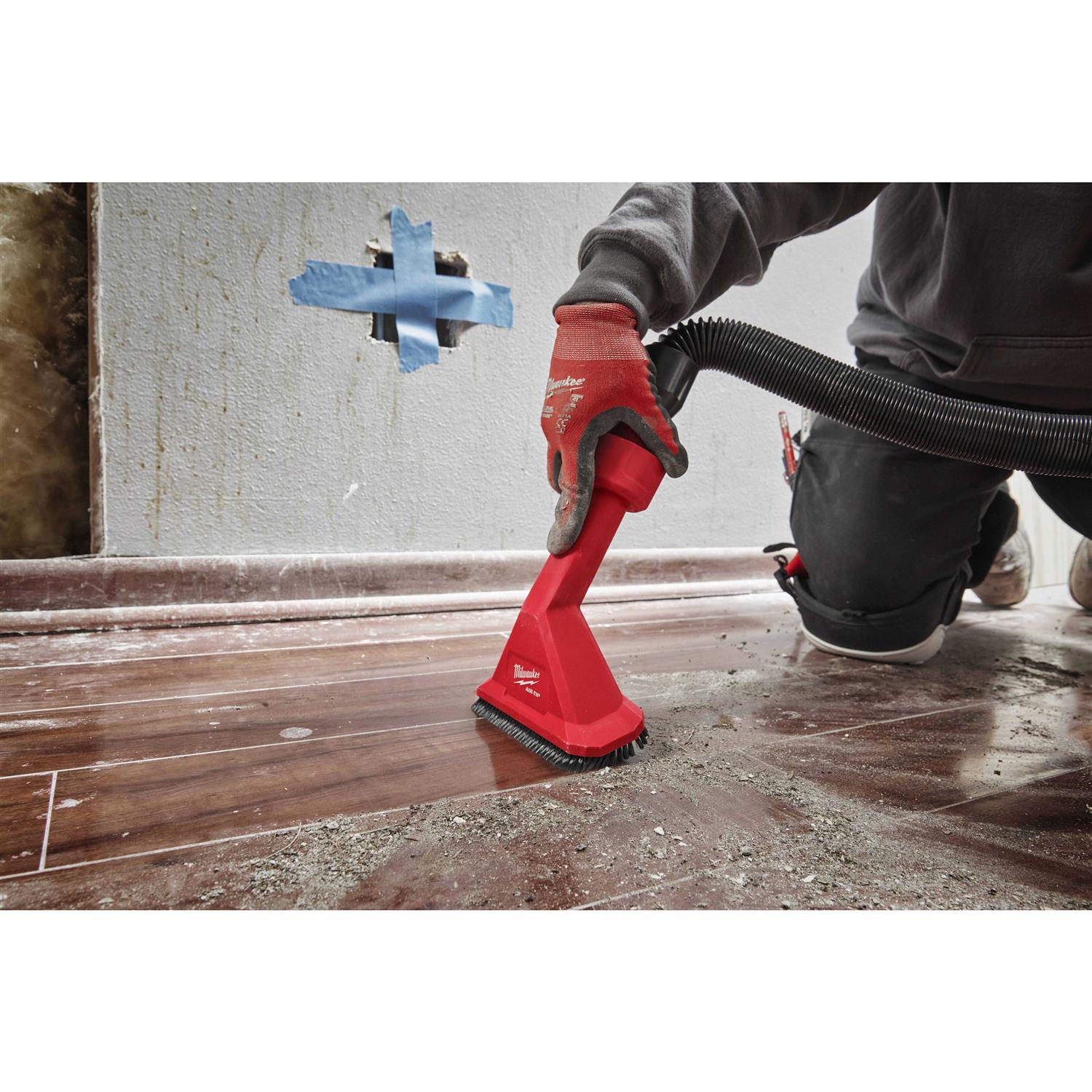 The Milwaukee Air-Tip Rocking Utility Nozzle with Brushes makes handheld cleanup easier. The bevels on either side of the nozzle and brushes all around the tool ensure it won’t get stuck to surfaces when cleaning in a rocking motion. The bristles can be used in finished areas or when agitating debris for removal. The Air-Tip Rocking Utility Nozzle with Brushes is compatible with other wet/dry vacuum brands with 1-1/4in., 1-7/8in. and 2-1/2in. diameters, and is part of the Air-Tip family of trade focused vacuum accessories., Optimized for handheld use Easier to push and pull across surfaces Beveled design optimized for both forward and backward cleaning strokes Agitating brushes for easy debris removal Bristles will not mar or scratch surfaces Includes (1) Air-Tip Rocking Utility Nozzle with Brushes Model Number: 49-90-2038. Age Group: adult.