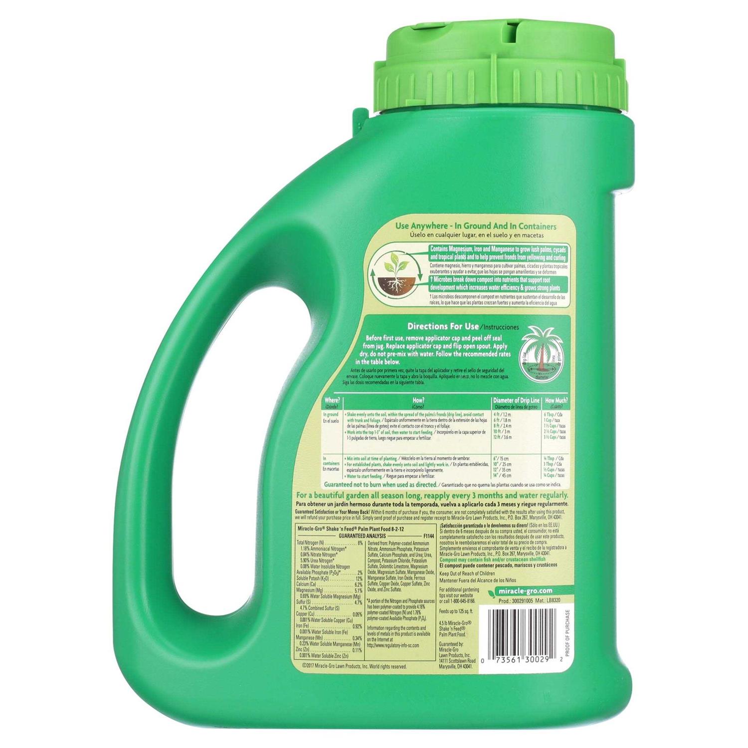 Designed for easy application to outdoor palm trees, the Miracle Gro 4.5 lb. Shake n Feed Continuous Release Palm Plant Food shakes on and takes the guesswork out of feeding. The food continuously nourishes tropical plants for up to three months and supplies magnesium, iron, and manganese to reduce the risk of fronds yellowing and curling. Started in 1951 on the belief that “you don t have to be an expert to create a beautiful garden”, MiracleGro has grown to become the leading marketer of branded consumer lawn and garden products. Merging with Scotts, America’s leading brand name in gardening, in 1995, MiracleGro has flourished across the United States and abroad.