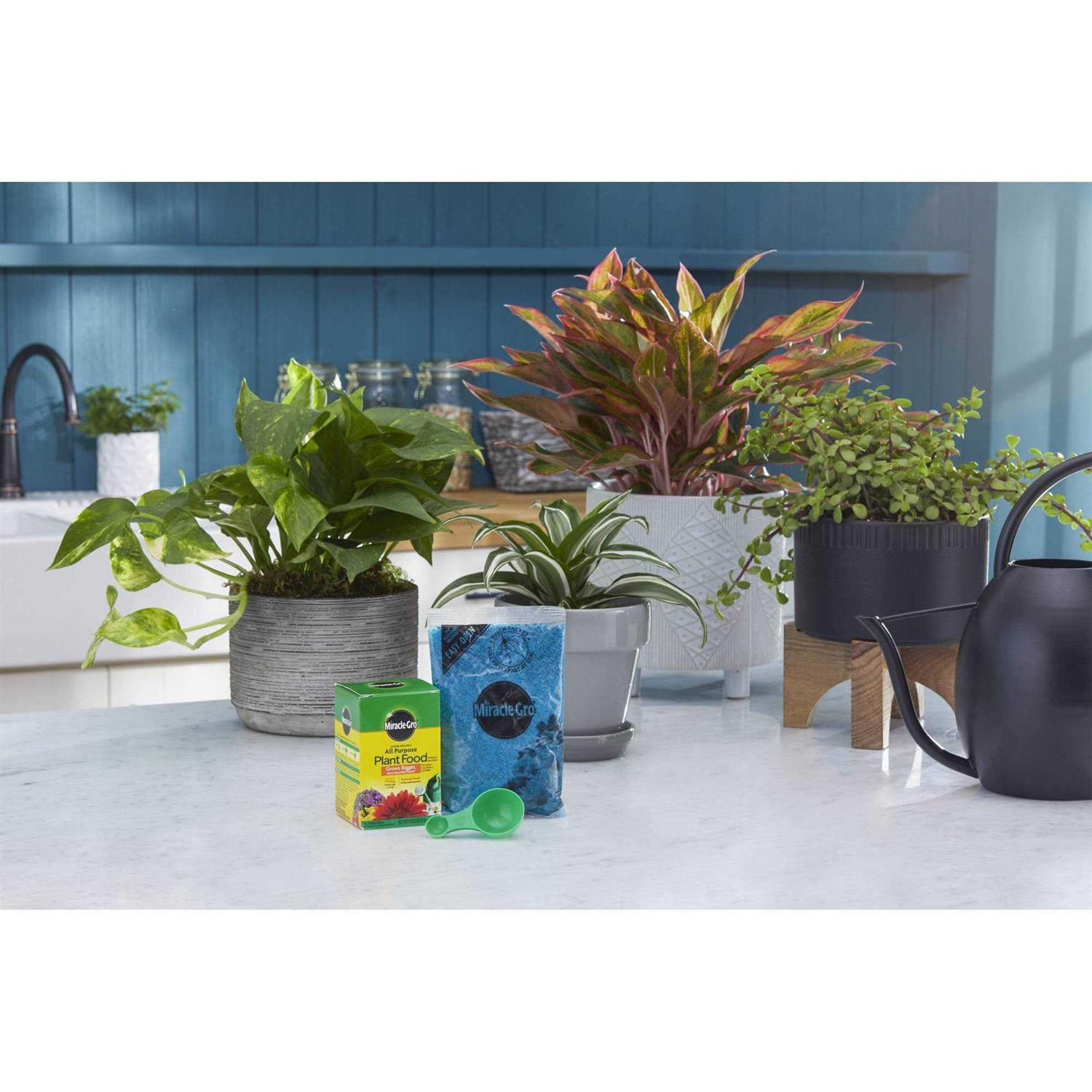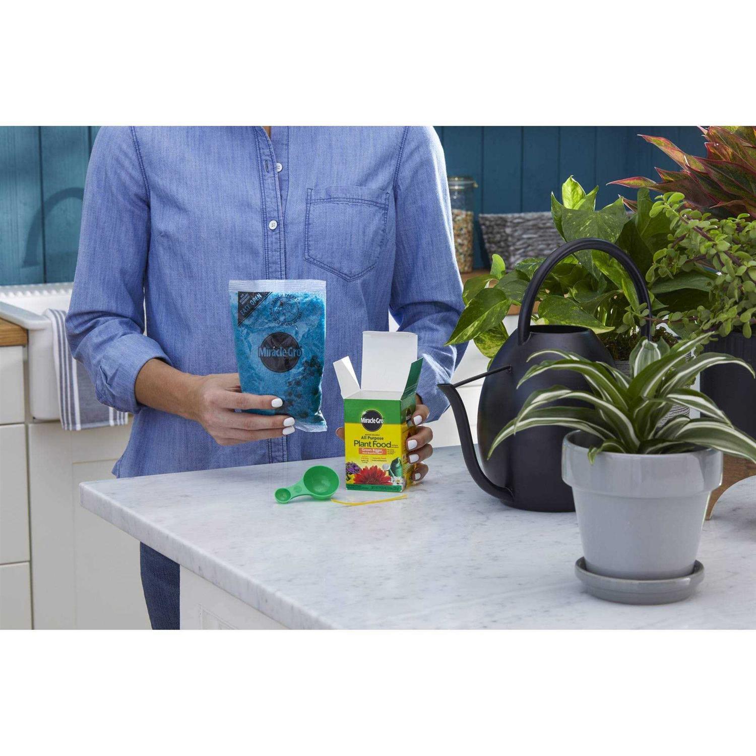 Full of essential nutrients, Miracle-Gro Water Soluble All Purpose Plant Food instantly feeds vegetables, trees, shrubs, and houseplants to grow bigger and more beautiful than unfed plants. Simply feed them every 1-2 weeks. The formula is safe for all plants, and is guaranteed not to burn when used as directed. Get beautiful results with Miracle-Gro.