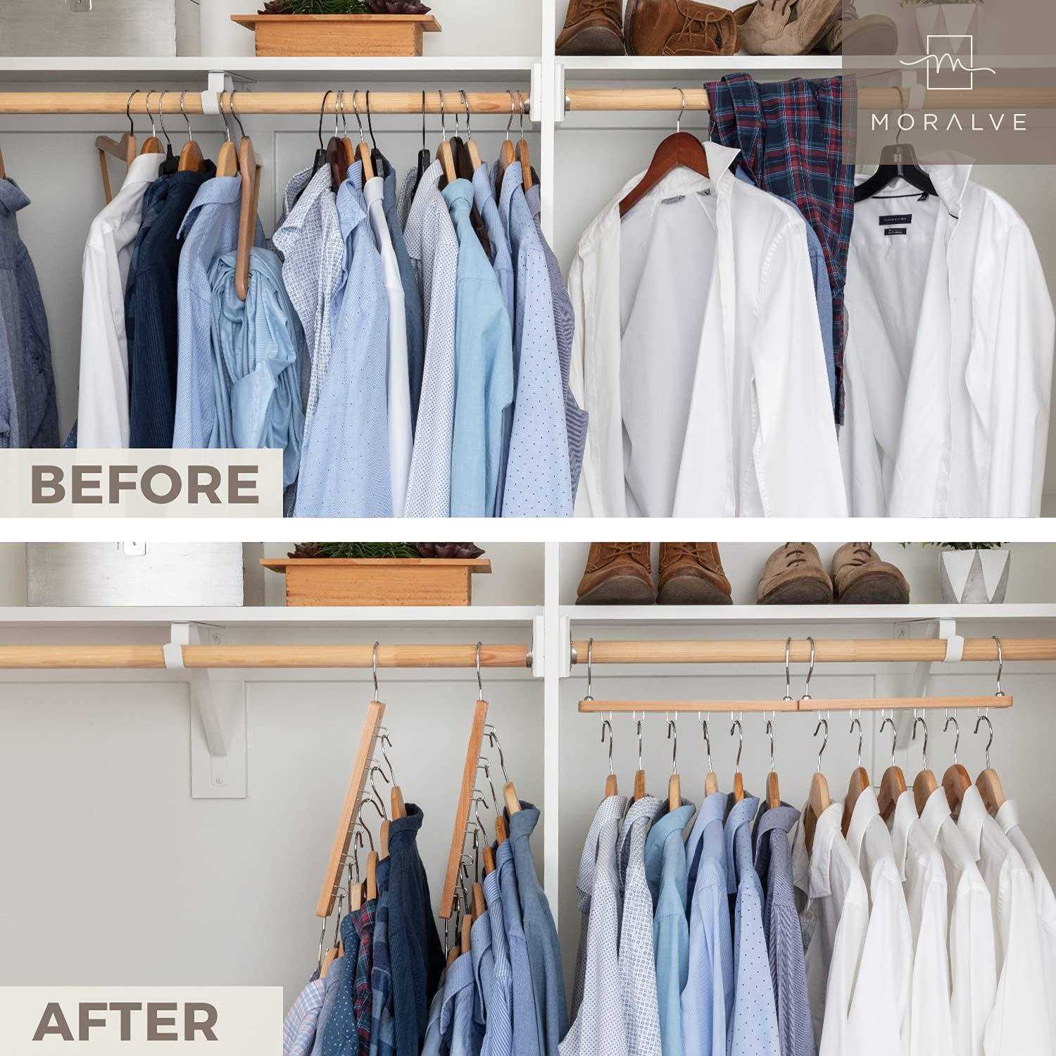 MORALVE Space Saving Hangers for Closet Organizer 4 Pack European Beechwood Shirt Organizer for Closet