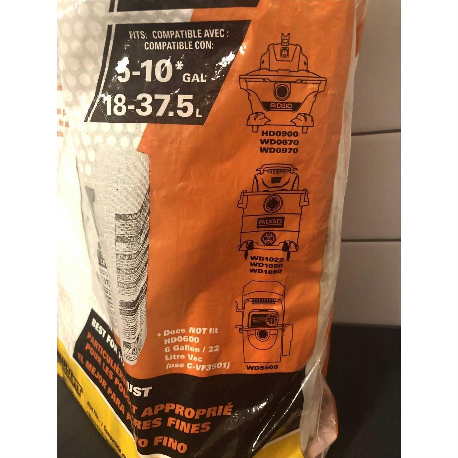 Ridgid Vf3503 High Efficiency Dry Pickup Dust Bags for 6