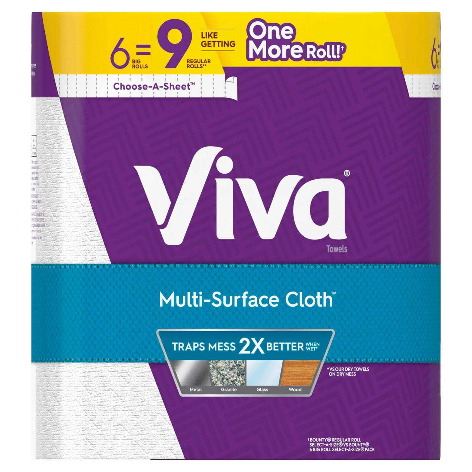 Viva Multi-Surface Cloth Choose-A-Sheet Paper Towels, White, Big Rolls – 6 count, 83 sheets each